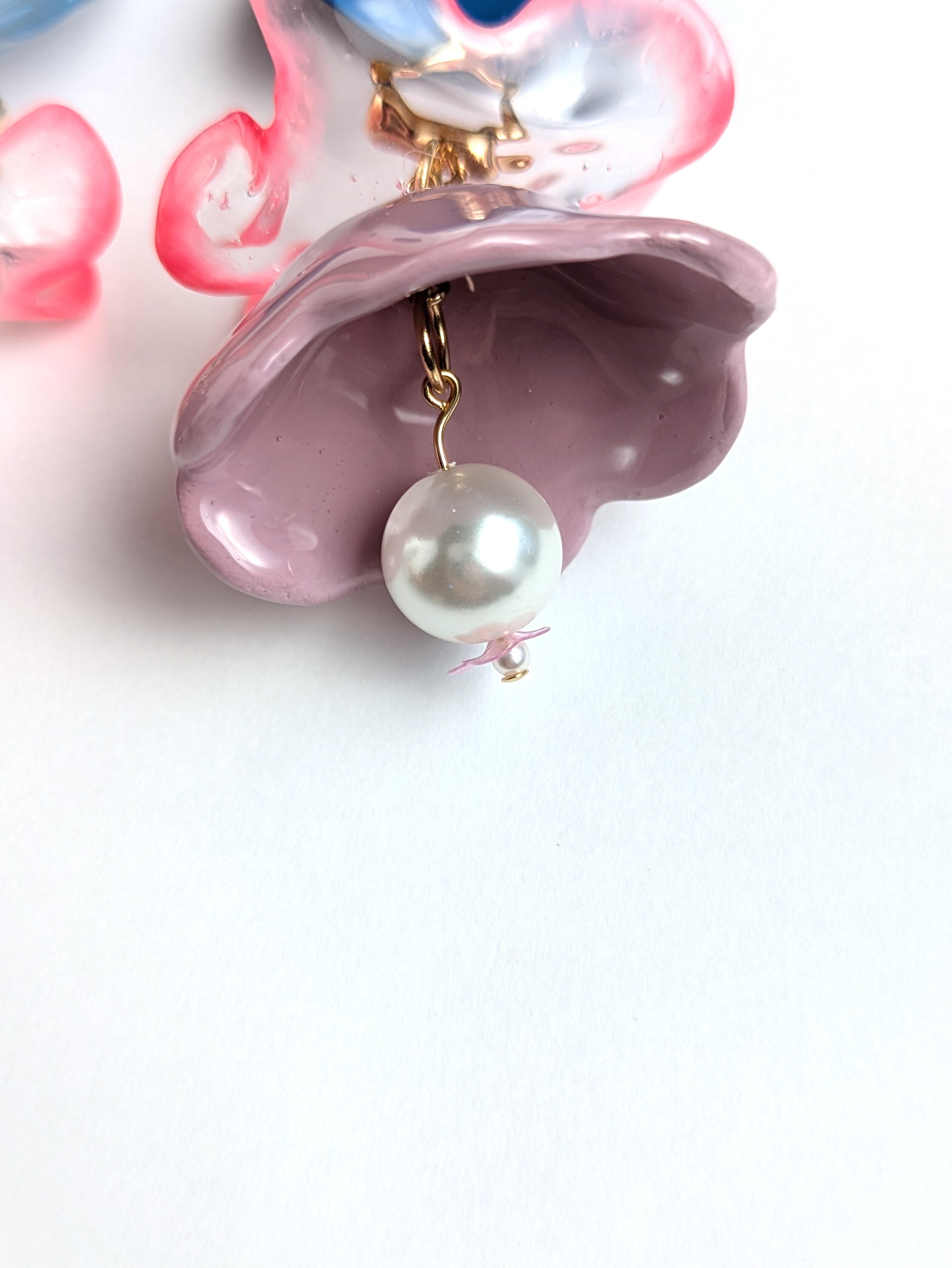 These earrings feature vivid blue flowers as their defining characteristic. A milky glass piece is placed at the center to bring out a simple cuteness. The combination of two types of pink flowers creates a charmingly swaying effect! Additionally, the lightweight materials ensure comfortable wear even for extended periods.