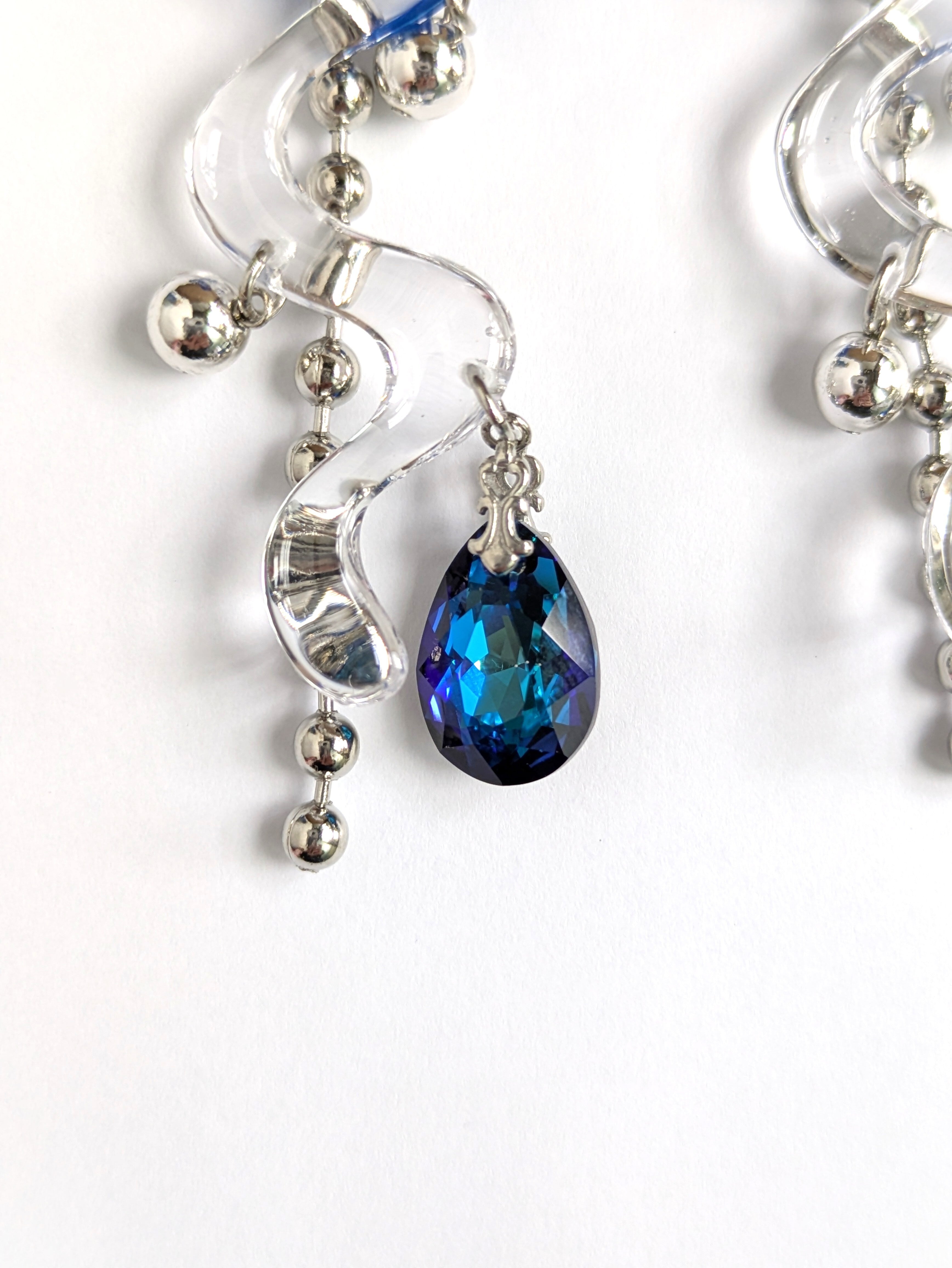 The combination of blue glass and silver components creates a sense of transparency and coolness. The design is elegant and beautiful, unified in a cool color palette. They add a touch of glamour every time you wear them! Crafted from lightweight materials, they remain comfortable even during extended wear.