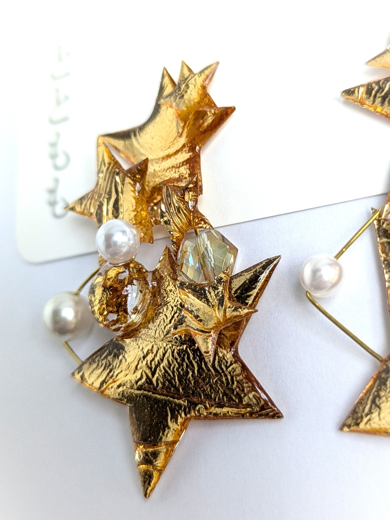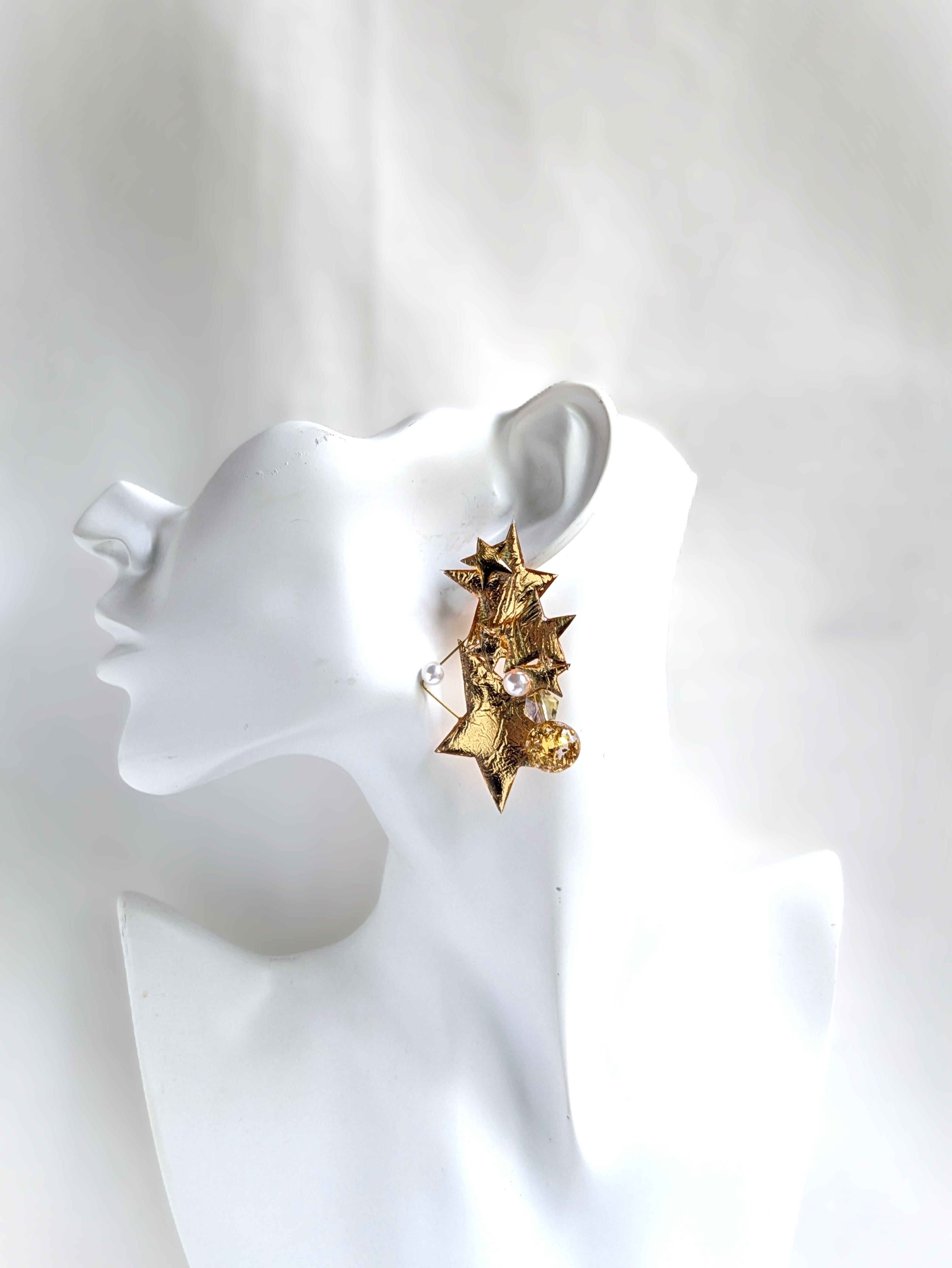 The gold stars sparkle and reflect, adding a glamorous touch around your face.