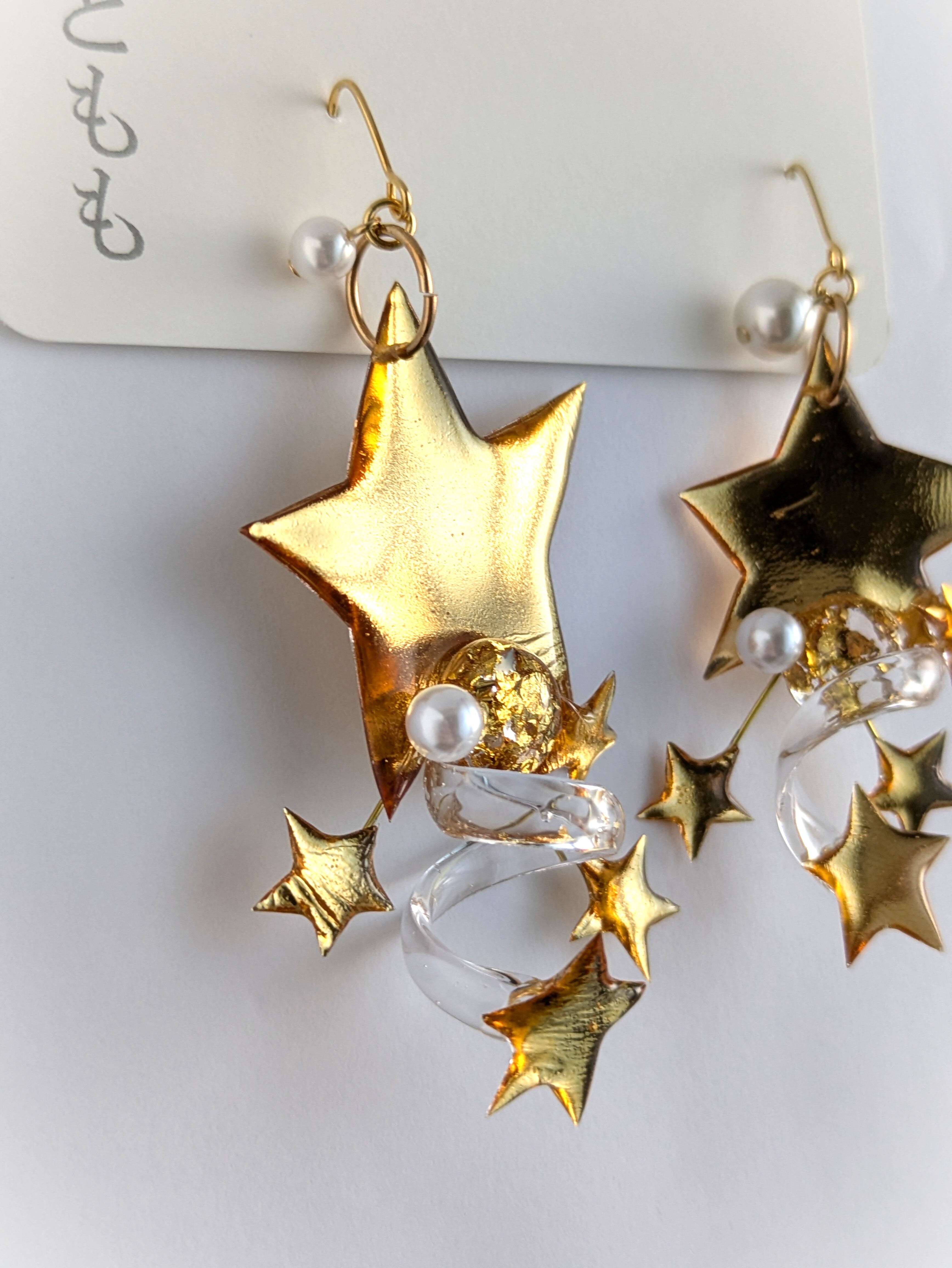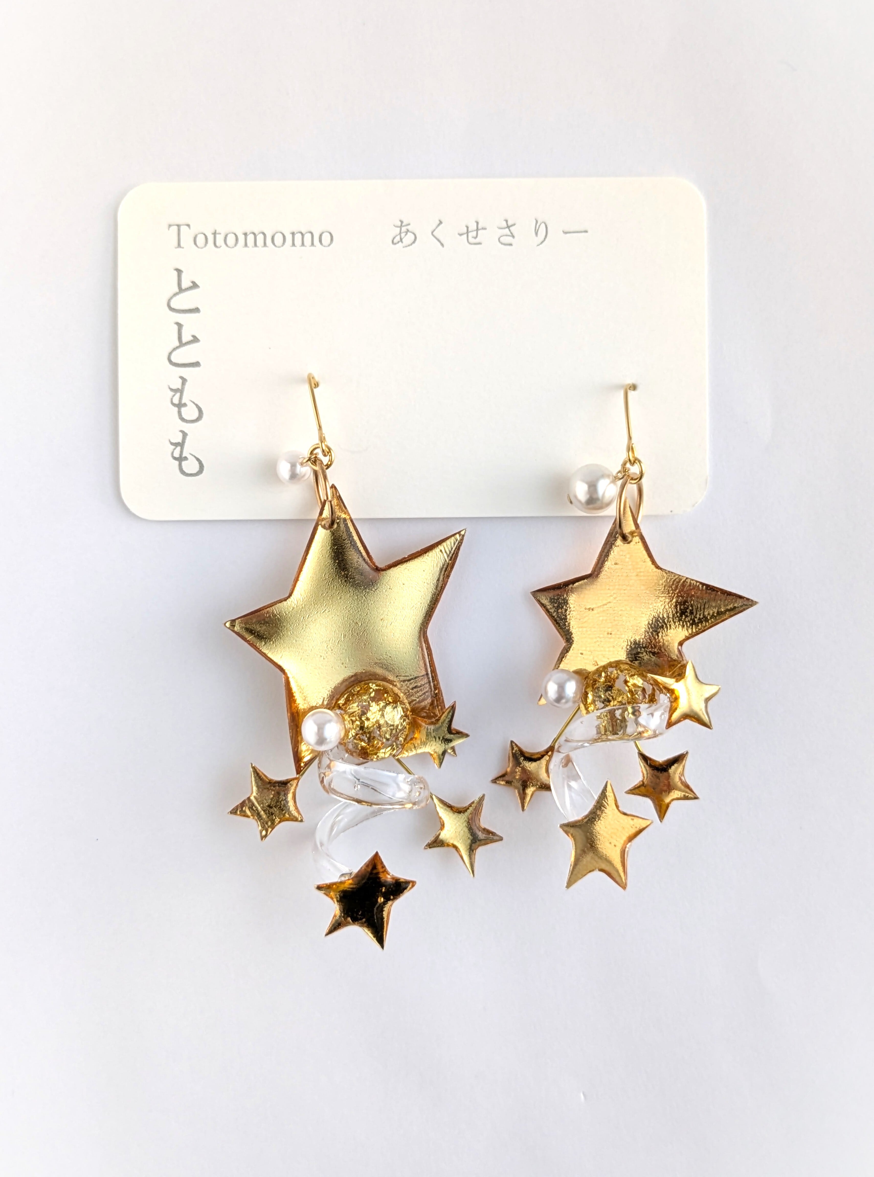 ゴールドの星がキラキラと反射して顔まわりを華やかに演出してくれます。