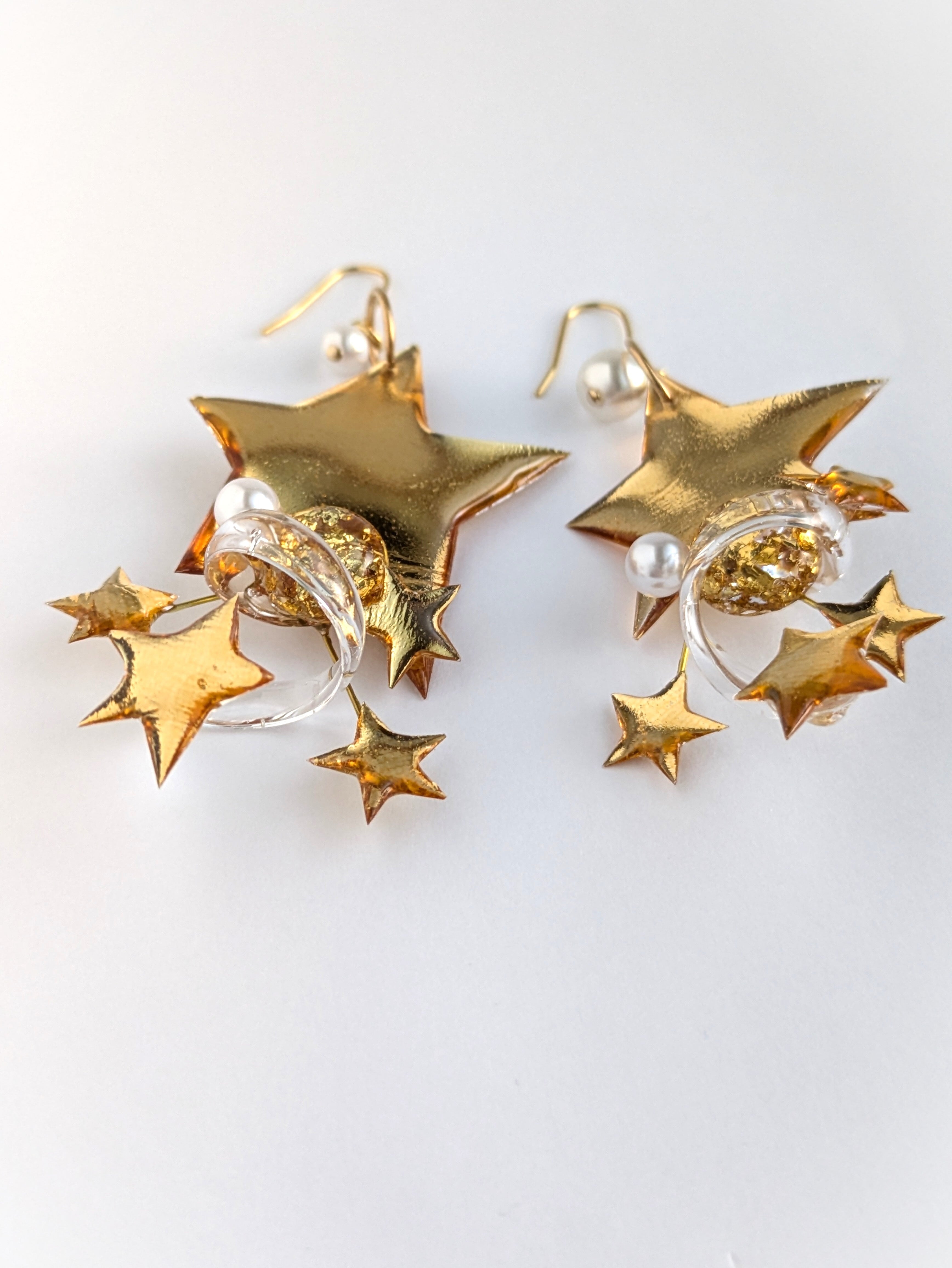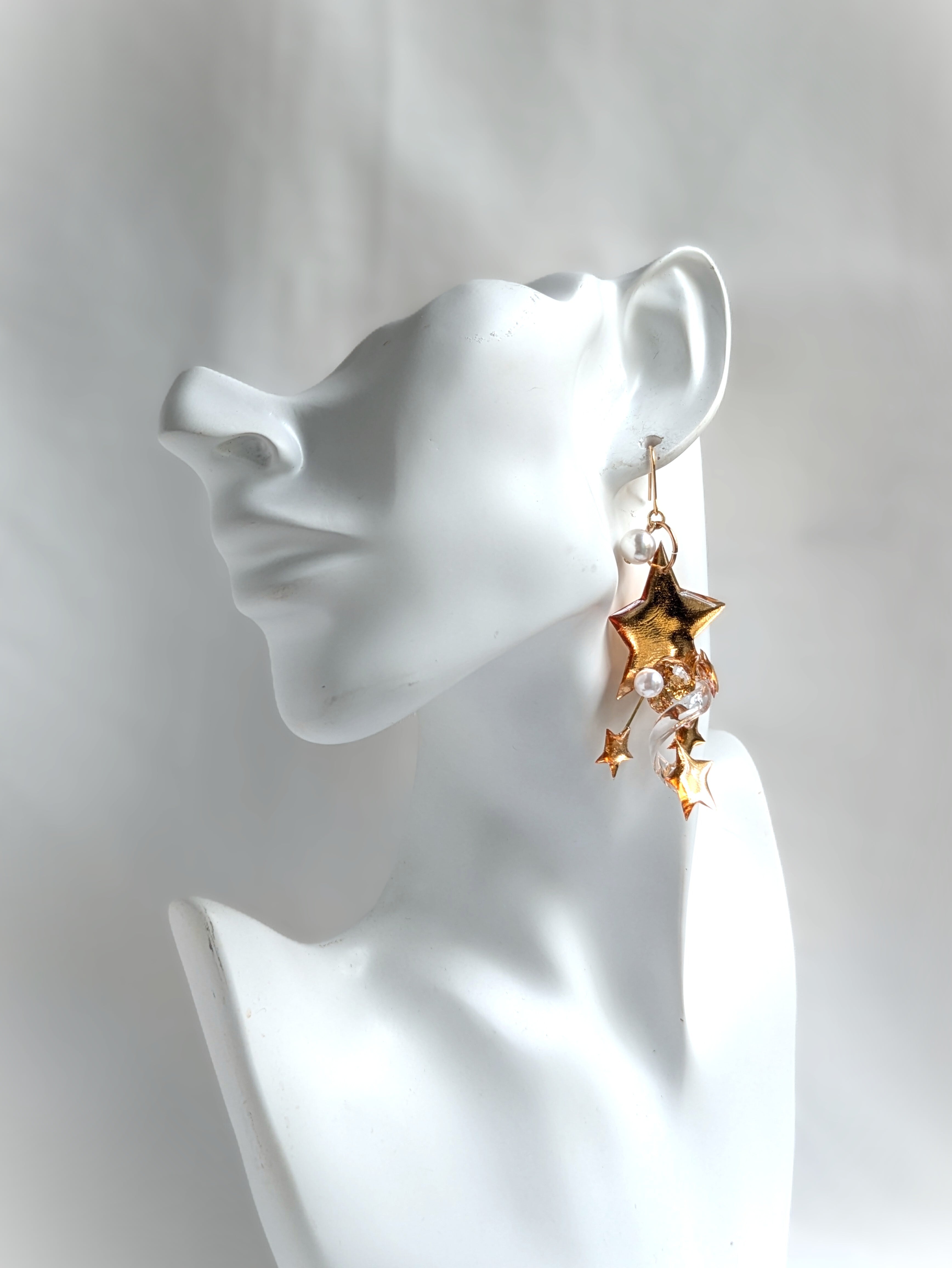 The gold stars sparkle and reflect, adding a glamorous touch around your face.