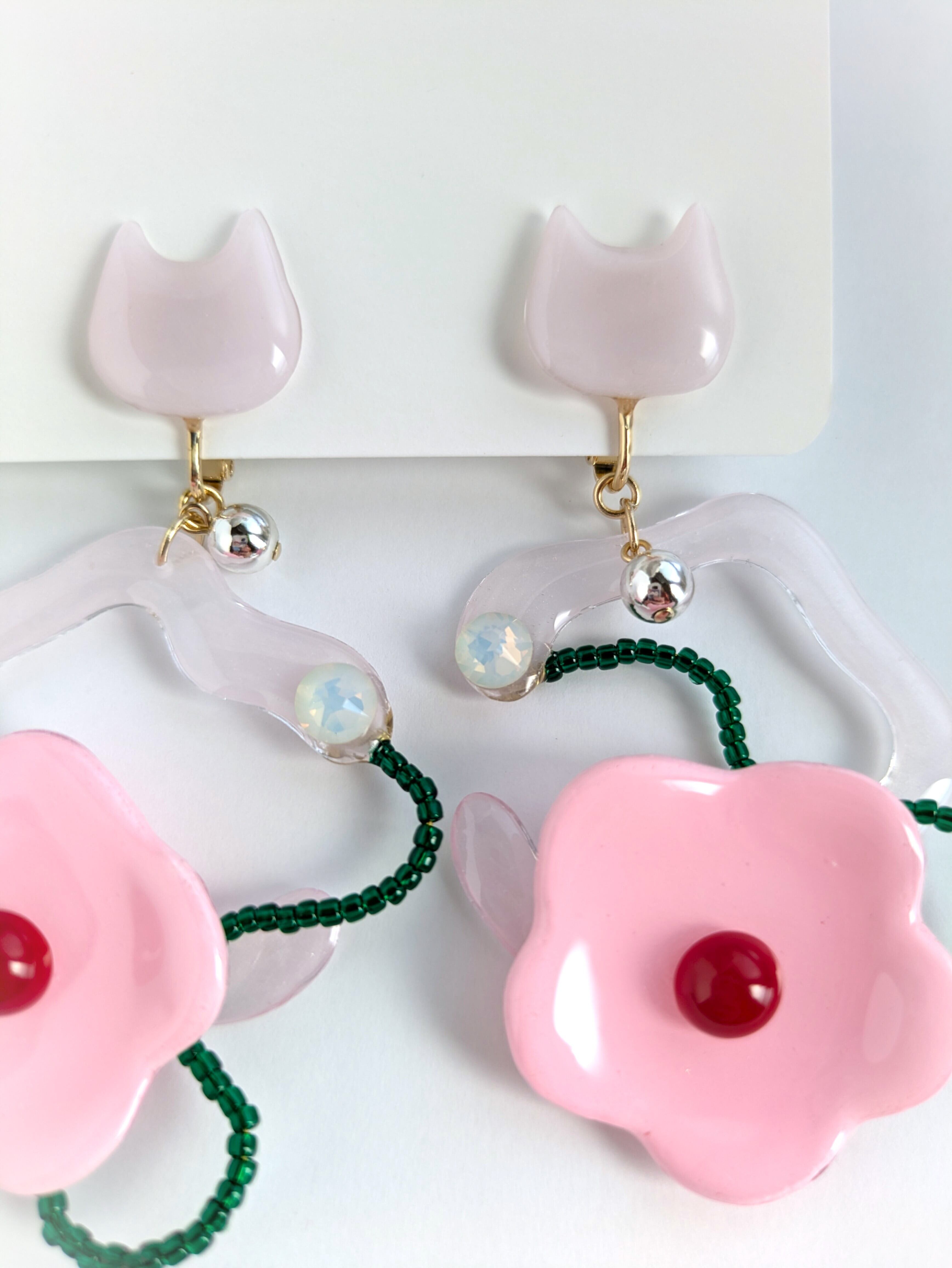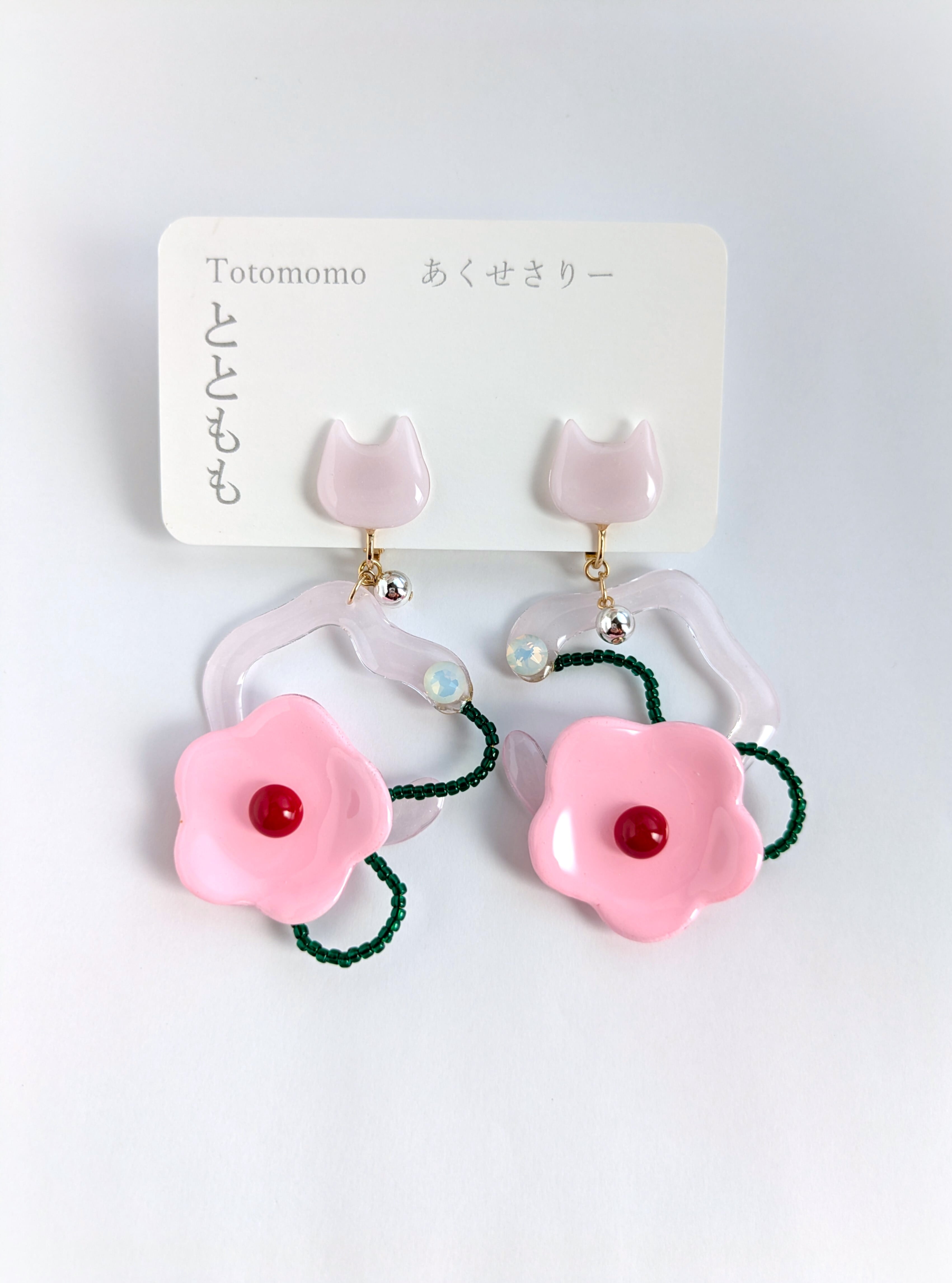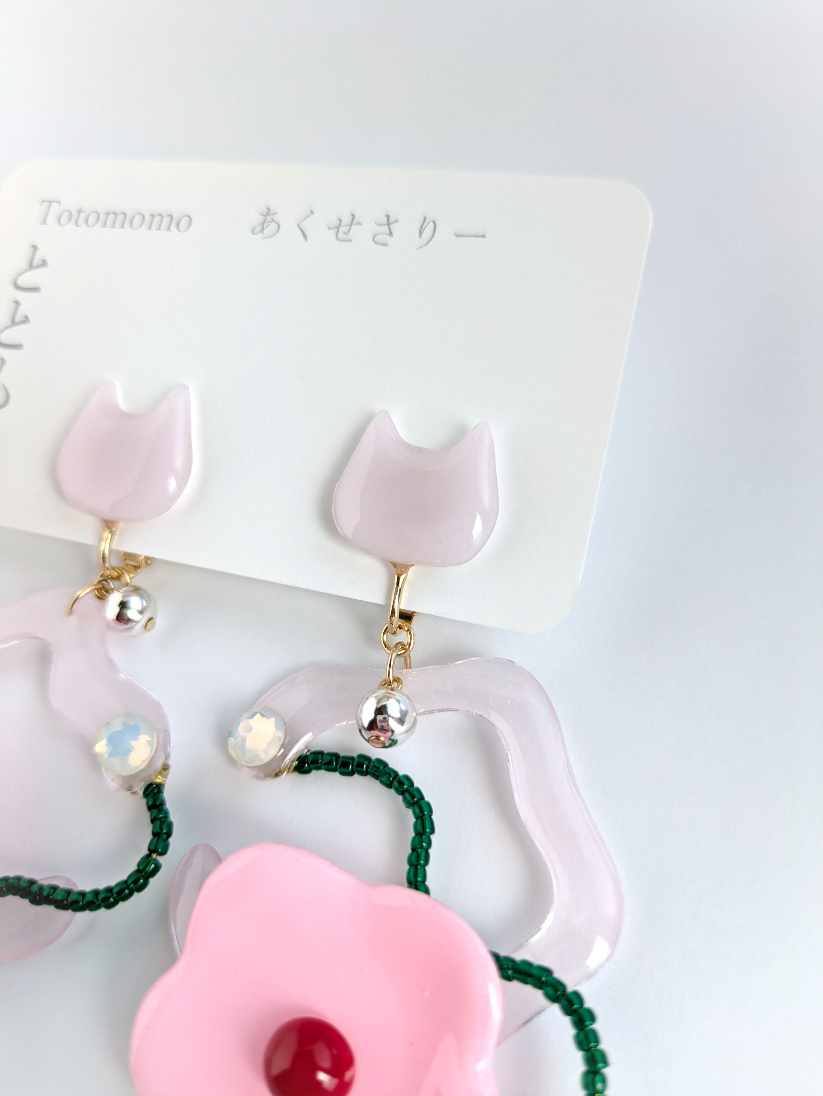 ねことお花の耳飾り//Cat and Flower