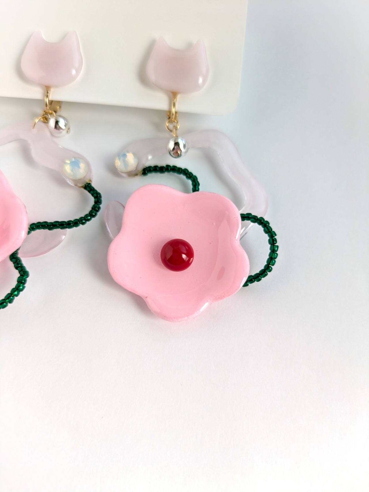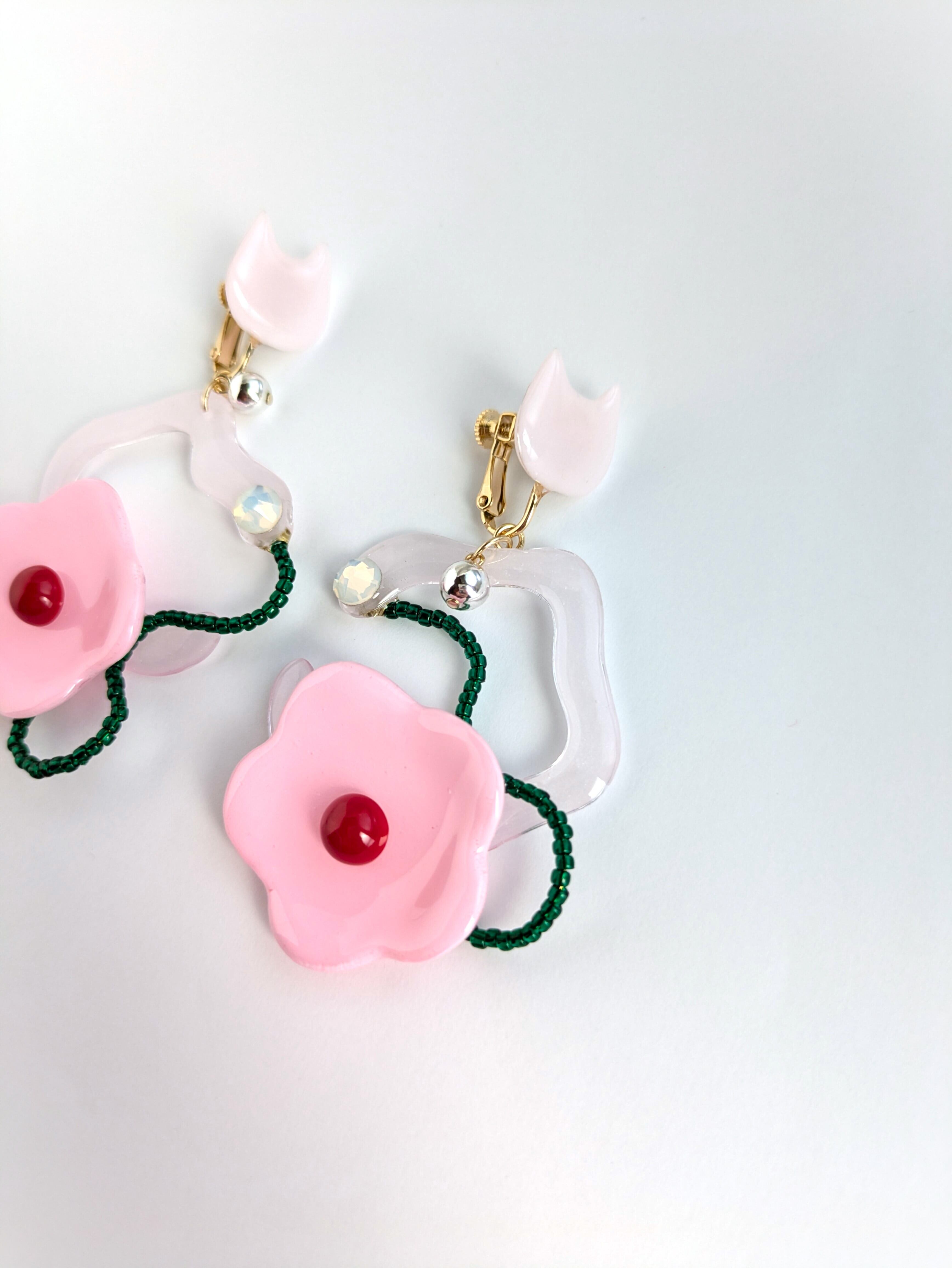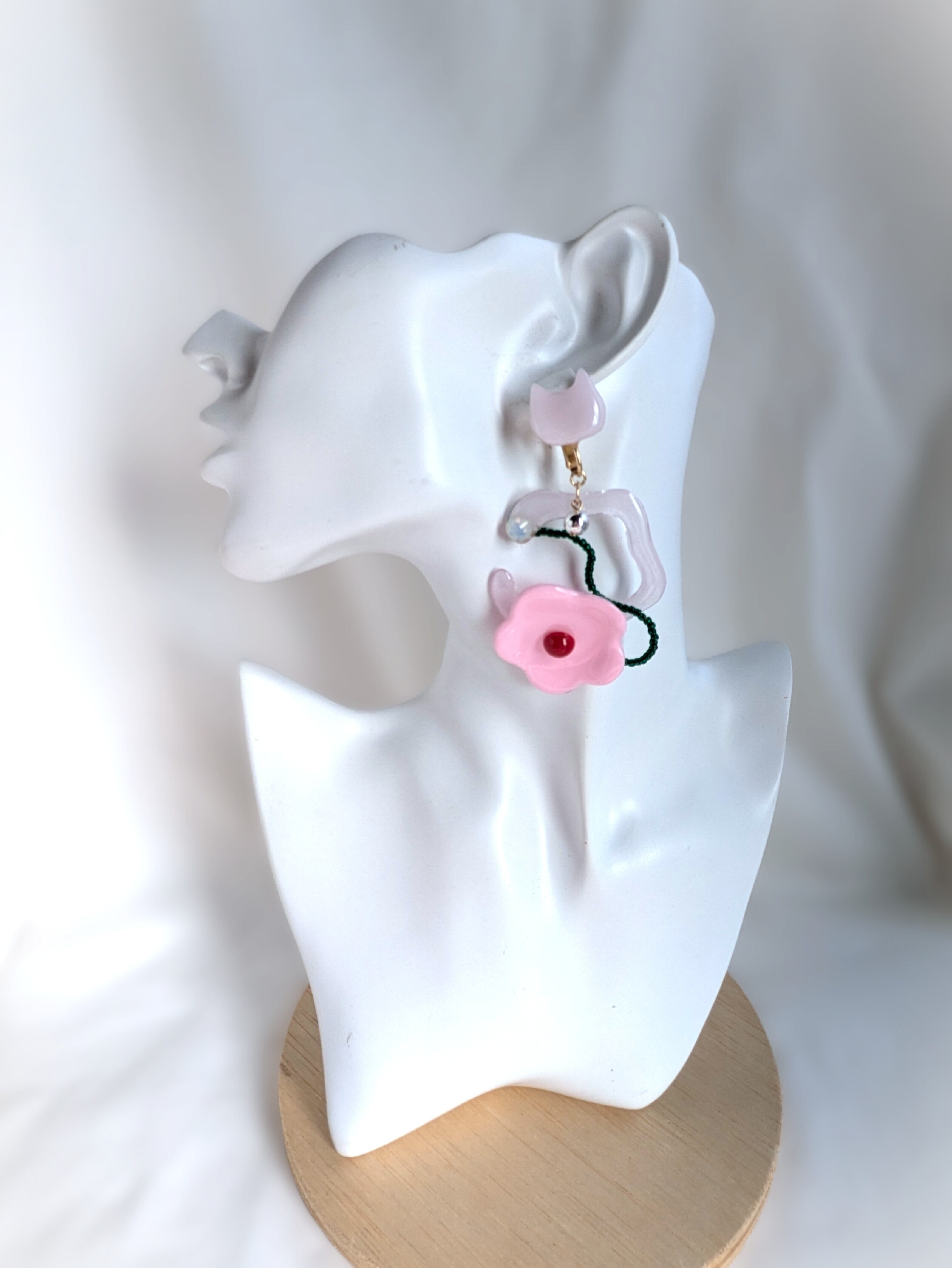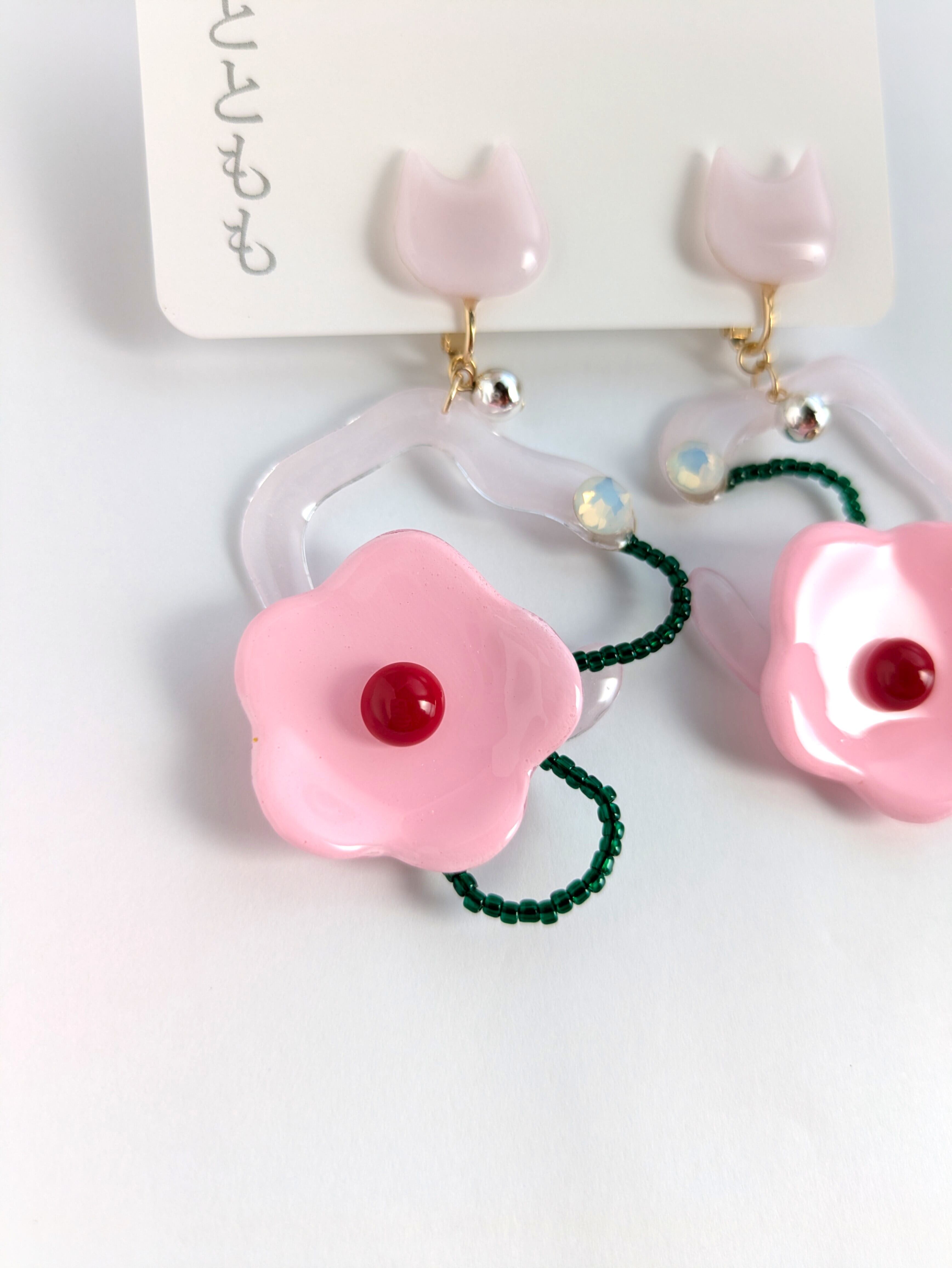 ねことお花の耳飾り//Cat and Flower