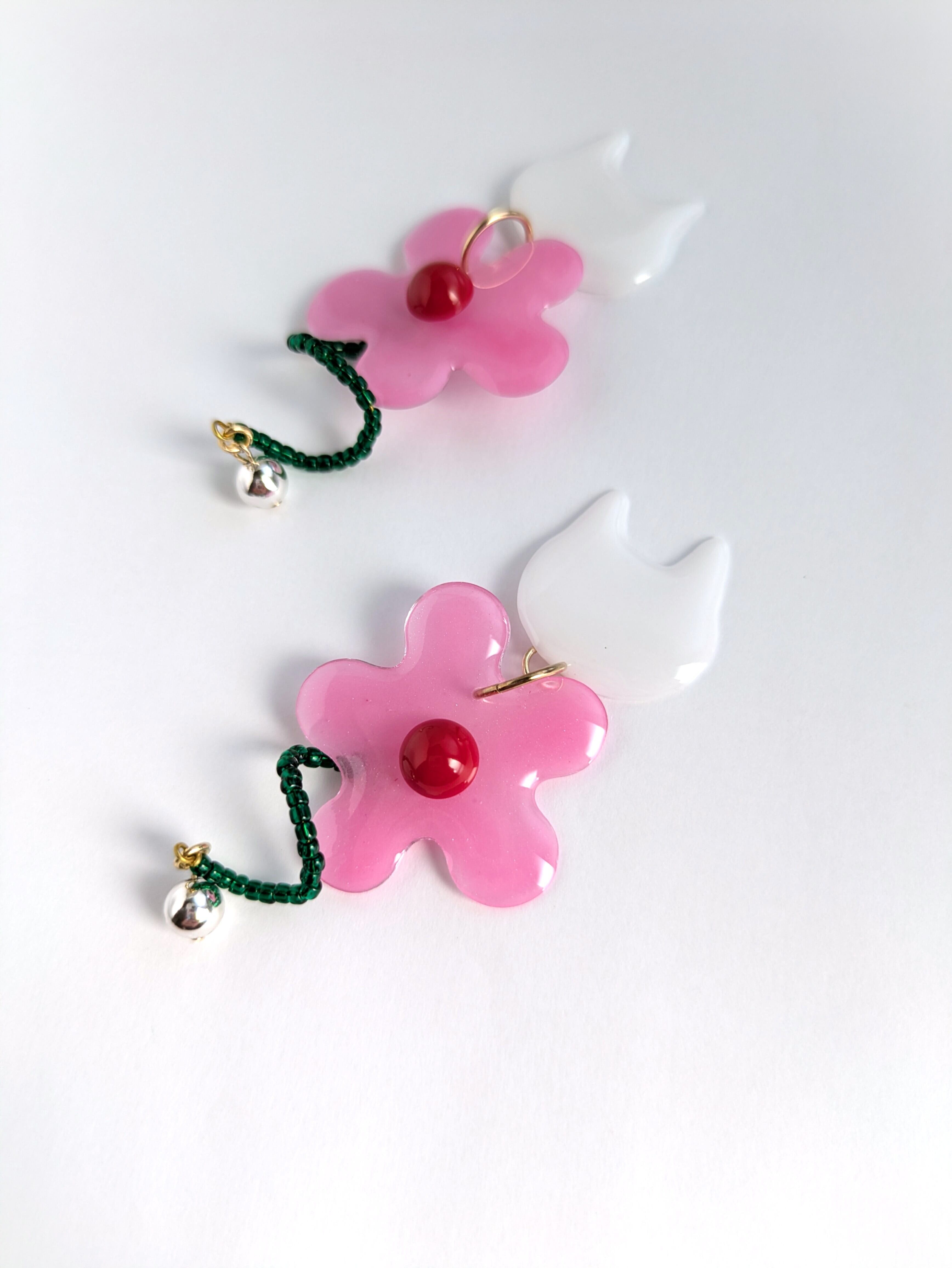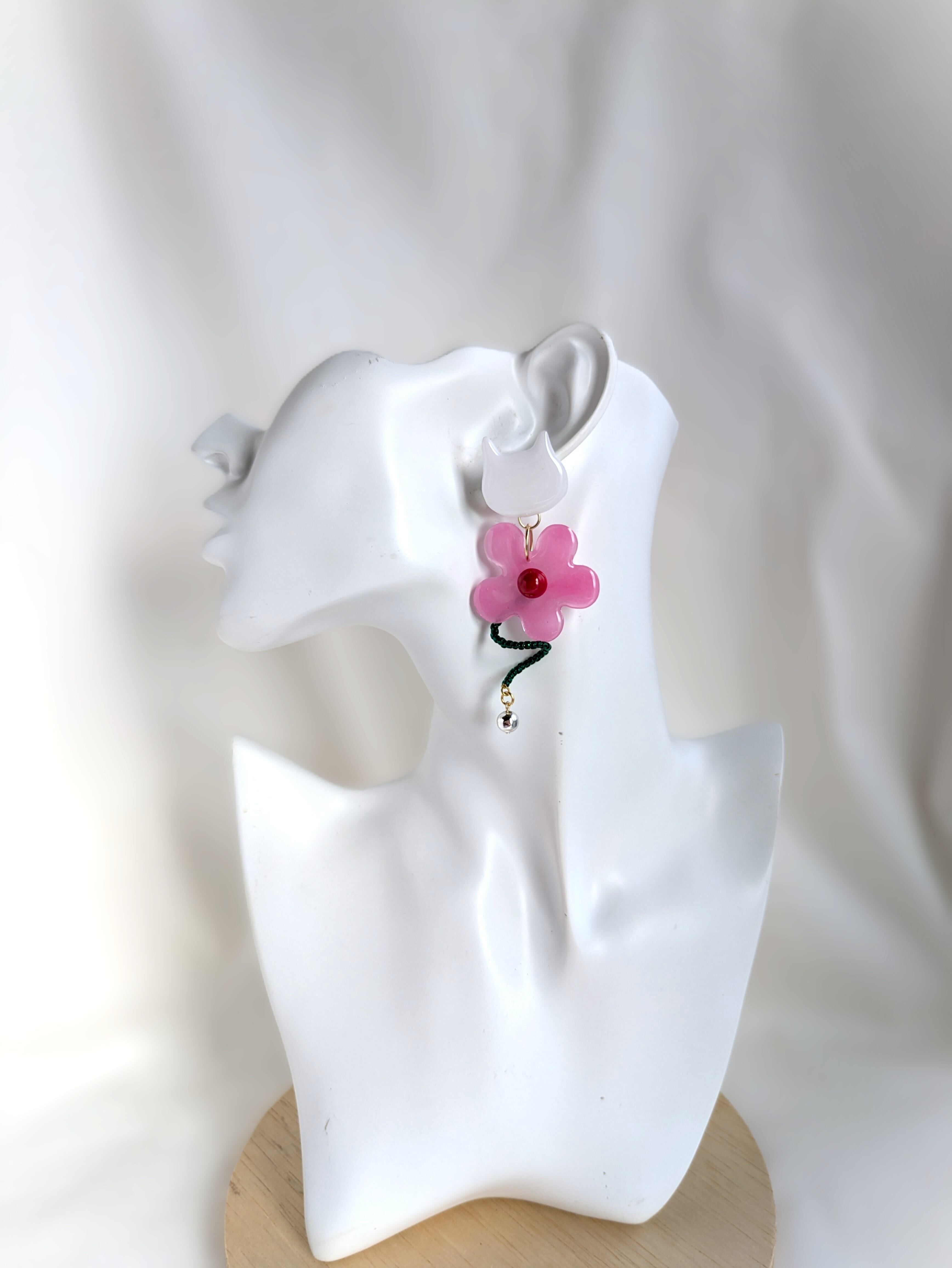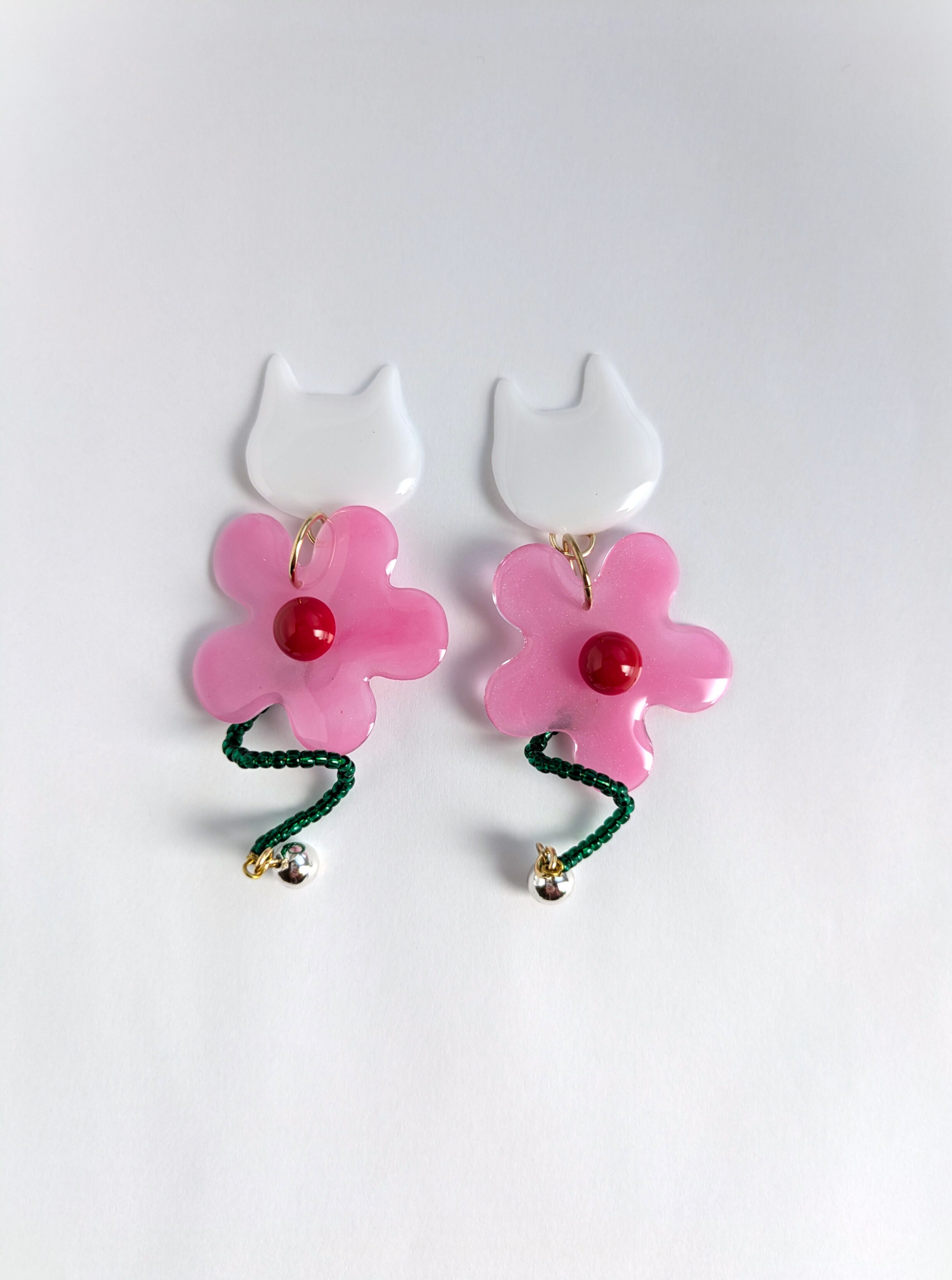 Introducing our White Cat and Flower Earrings!