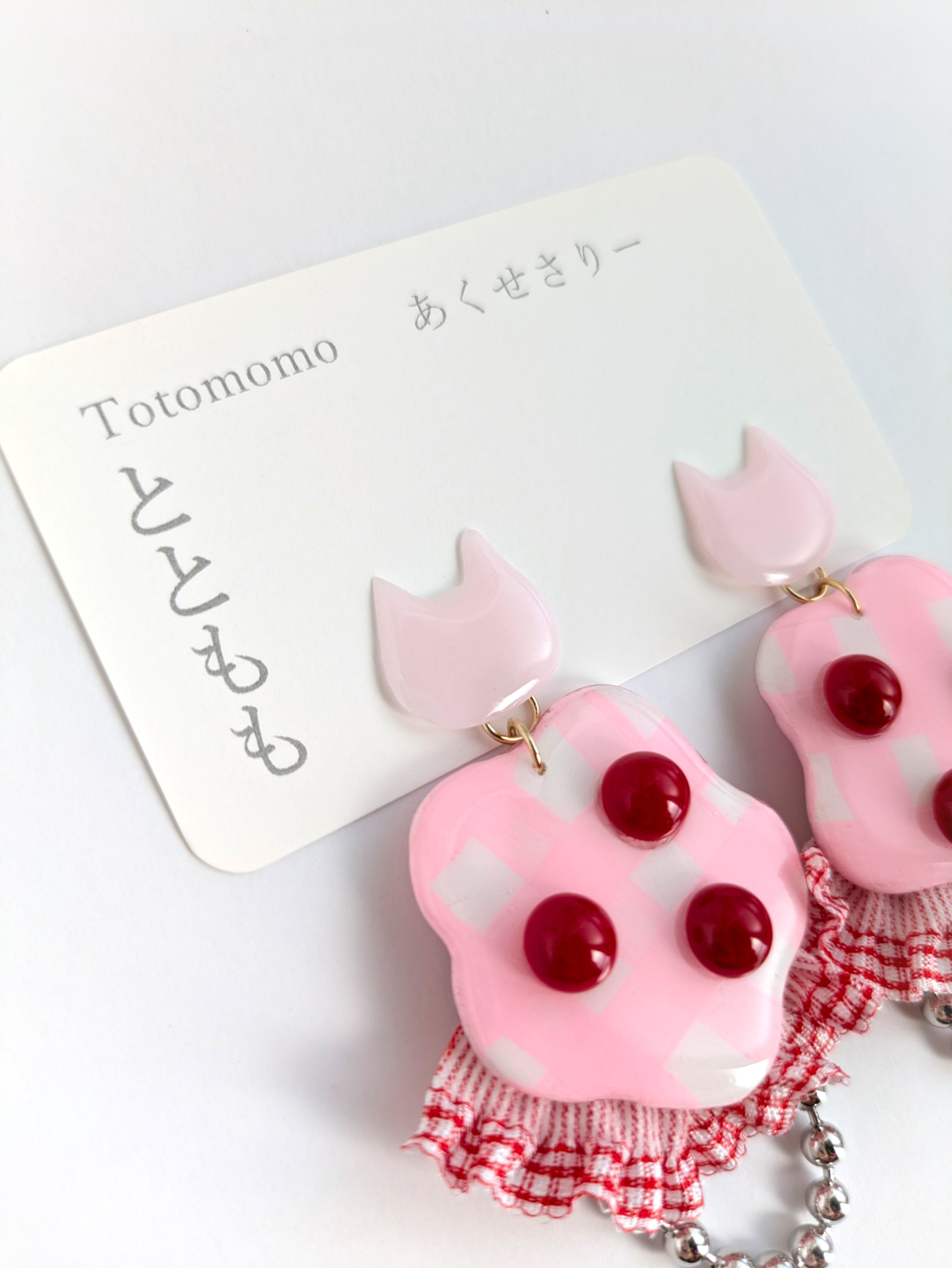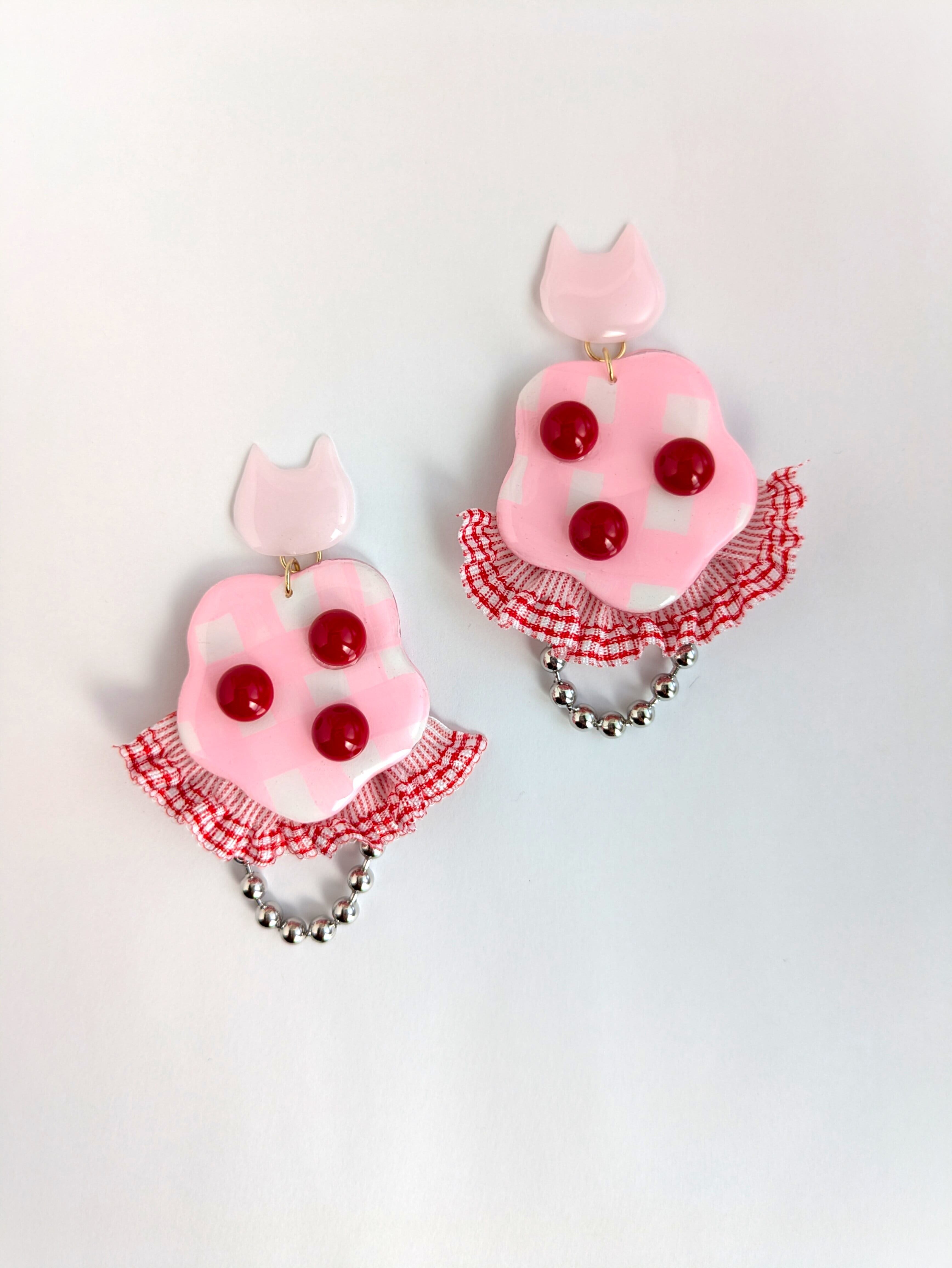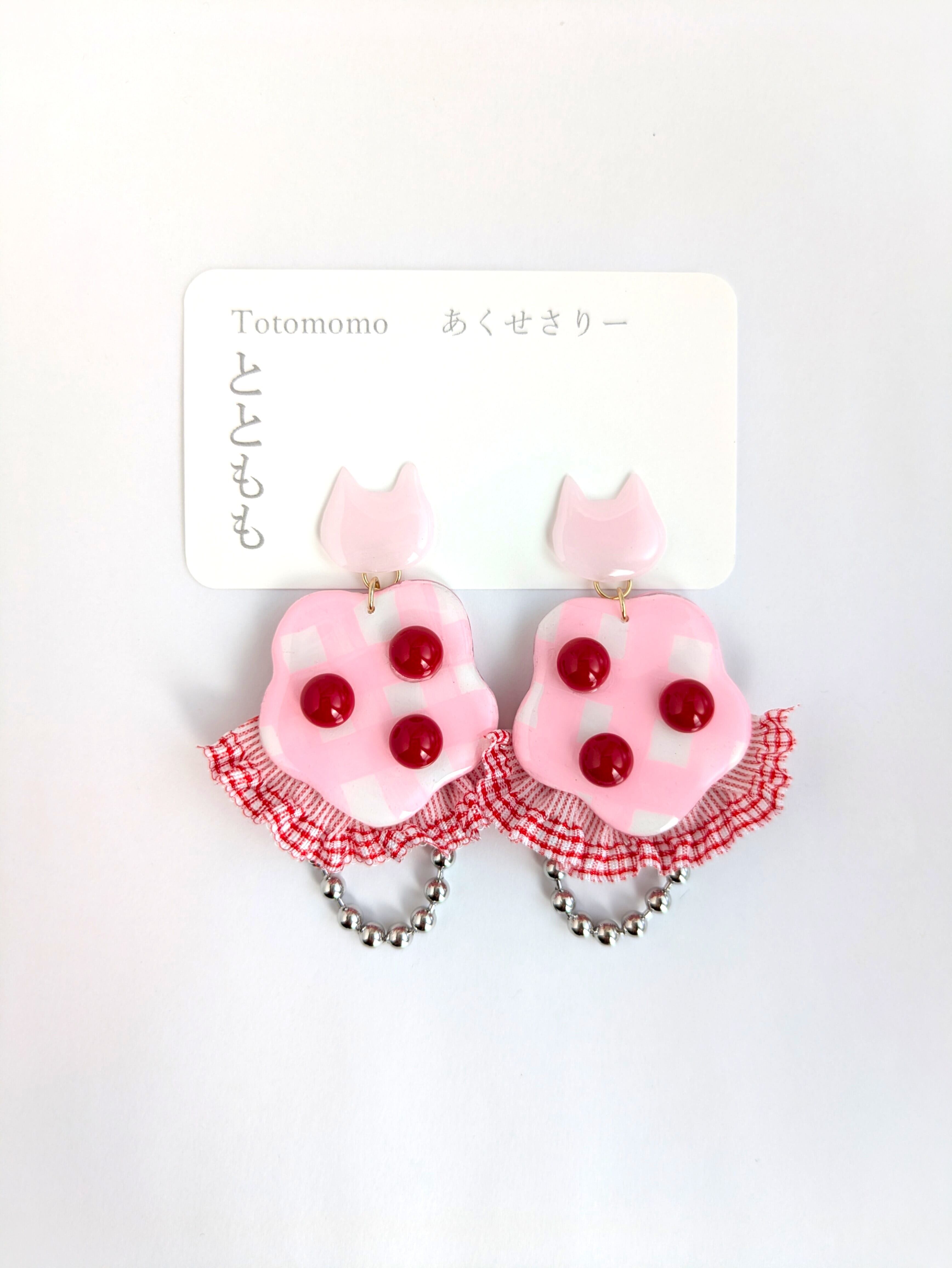 ねことピンクな耳飾り//Cat and pink