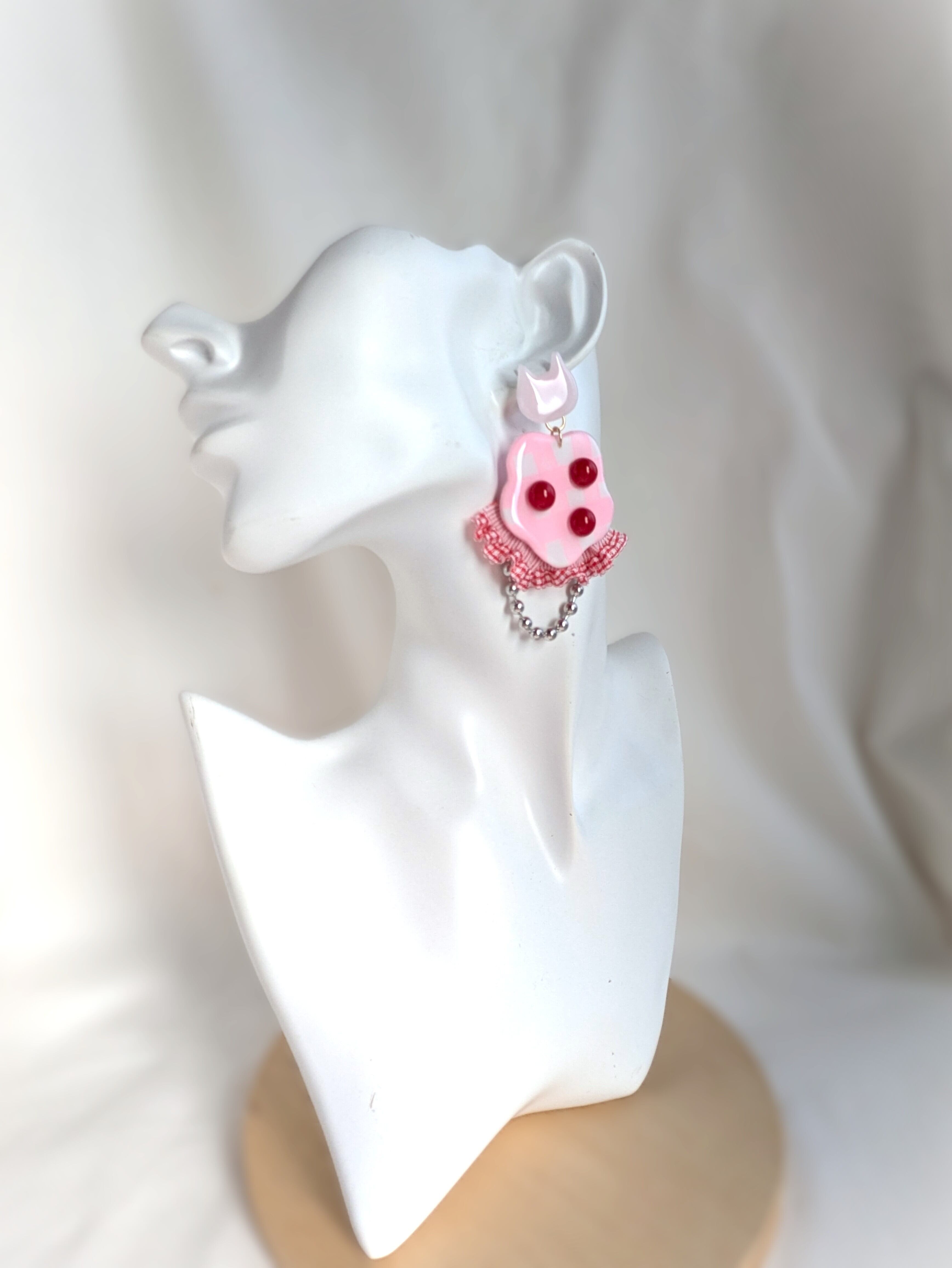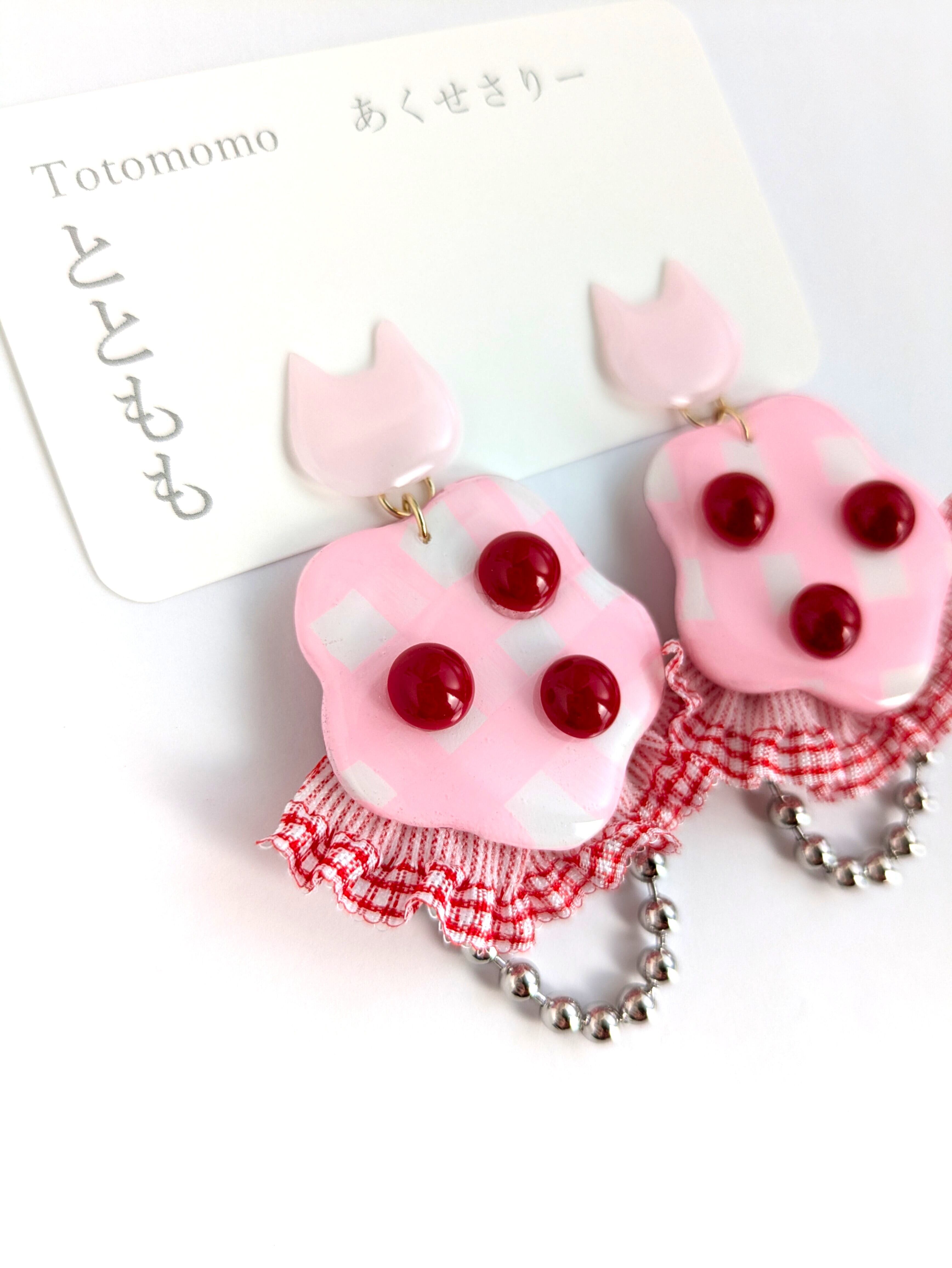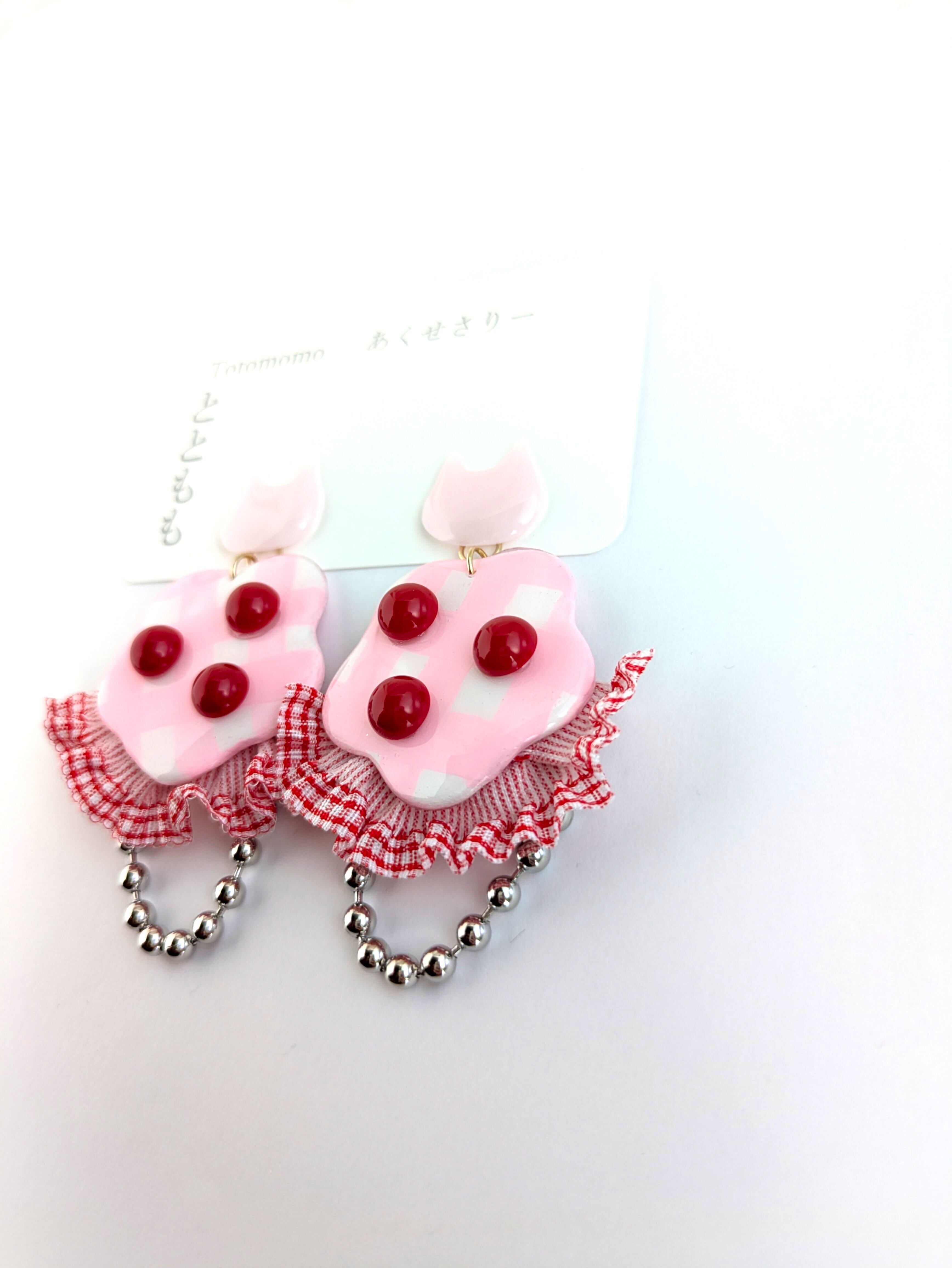 ねことピンクな耳飾り//Cat and pink