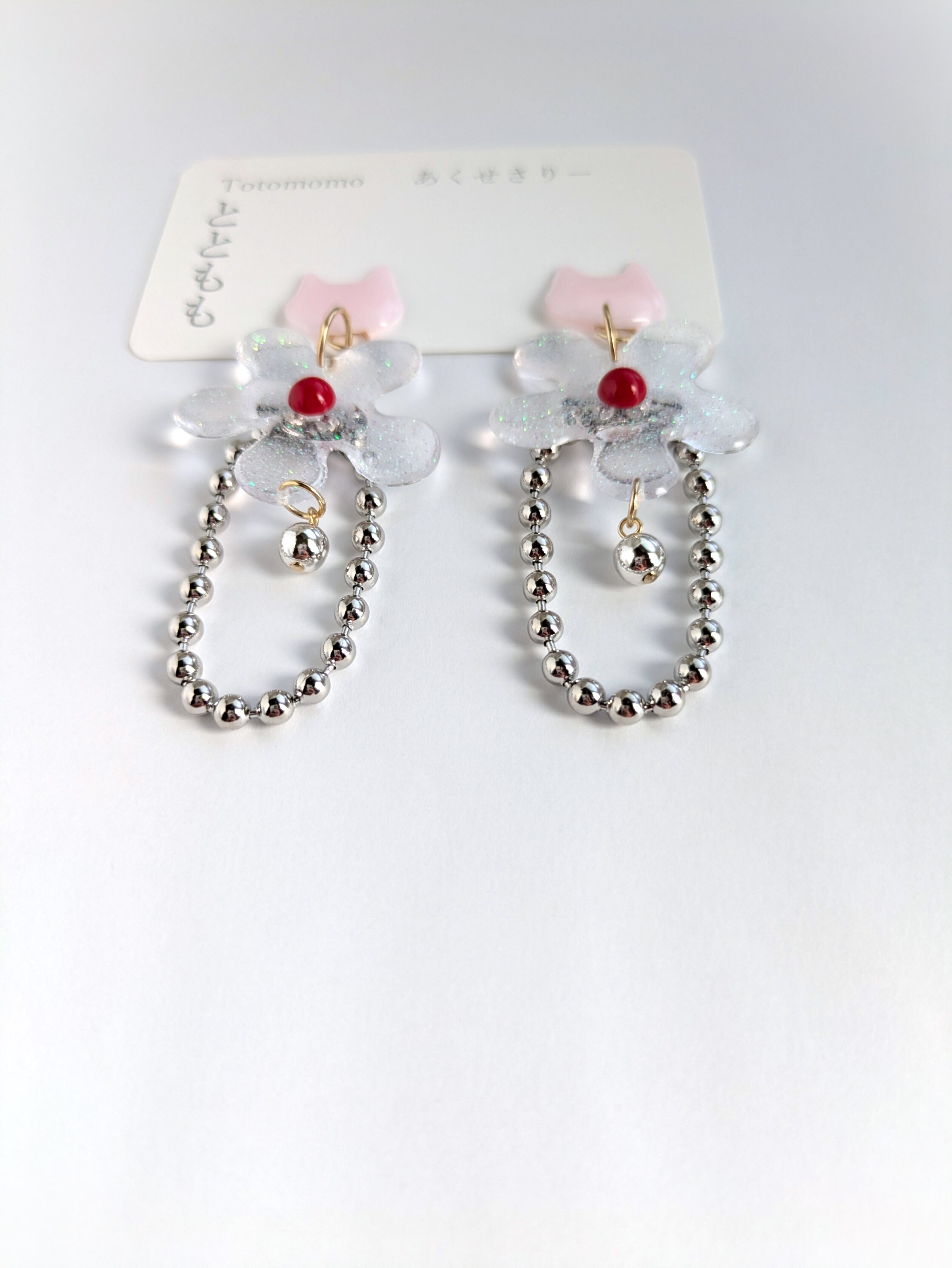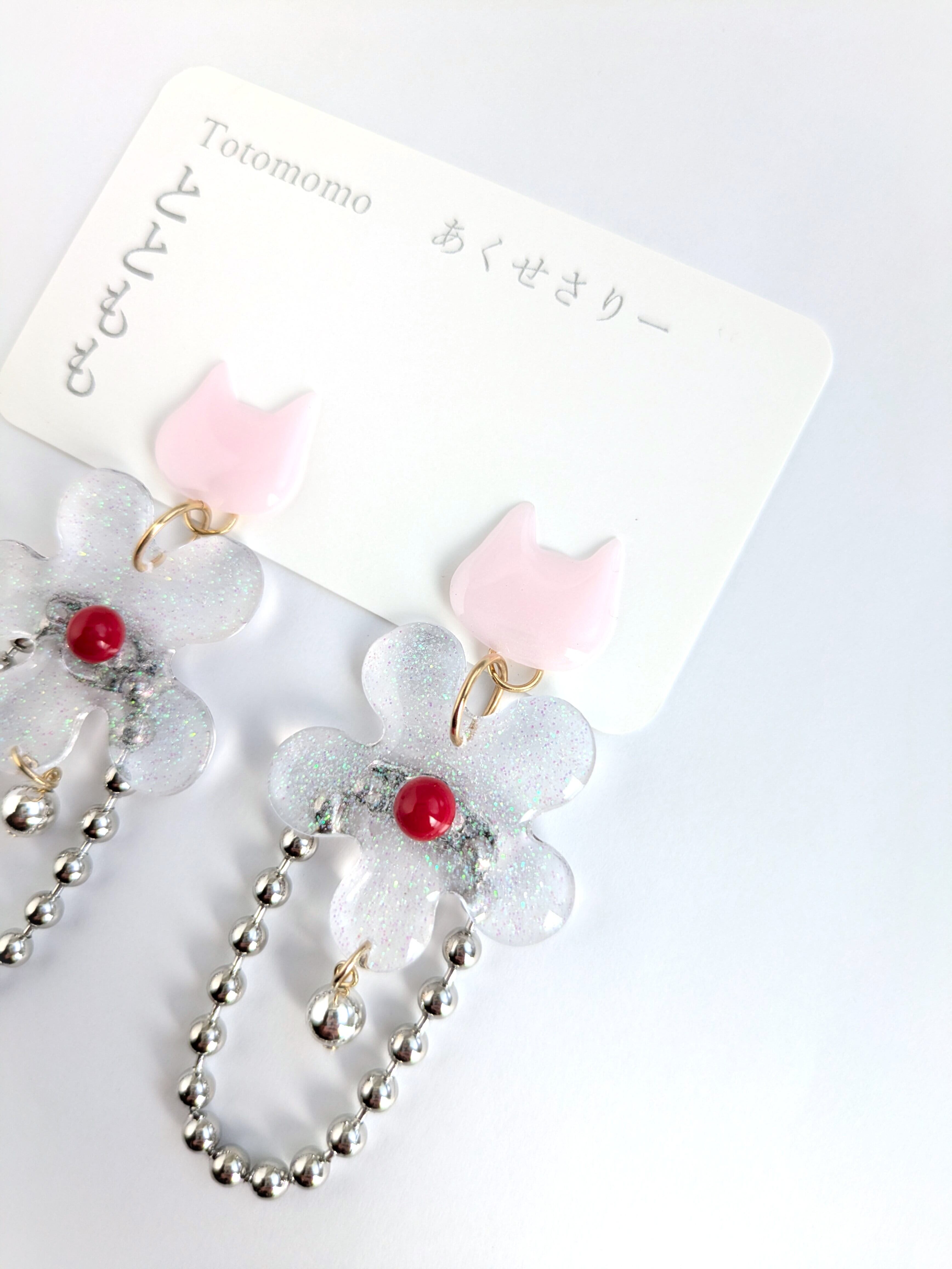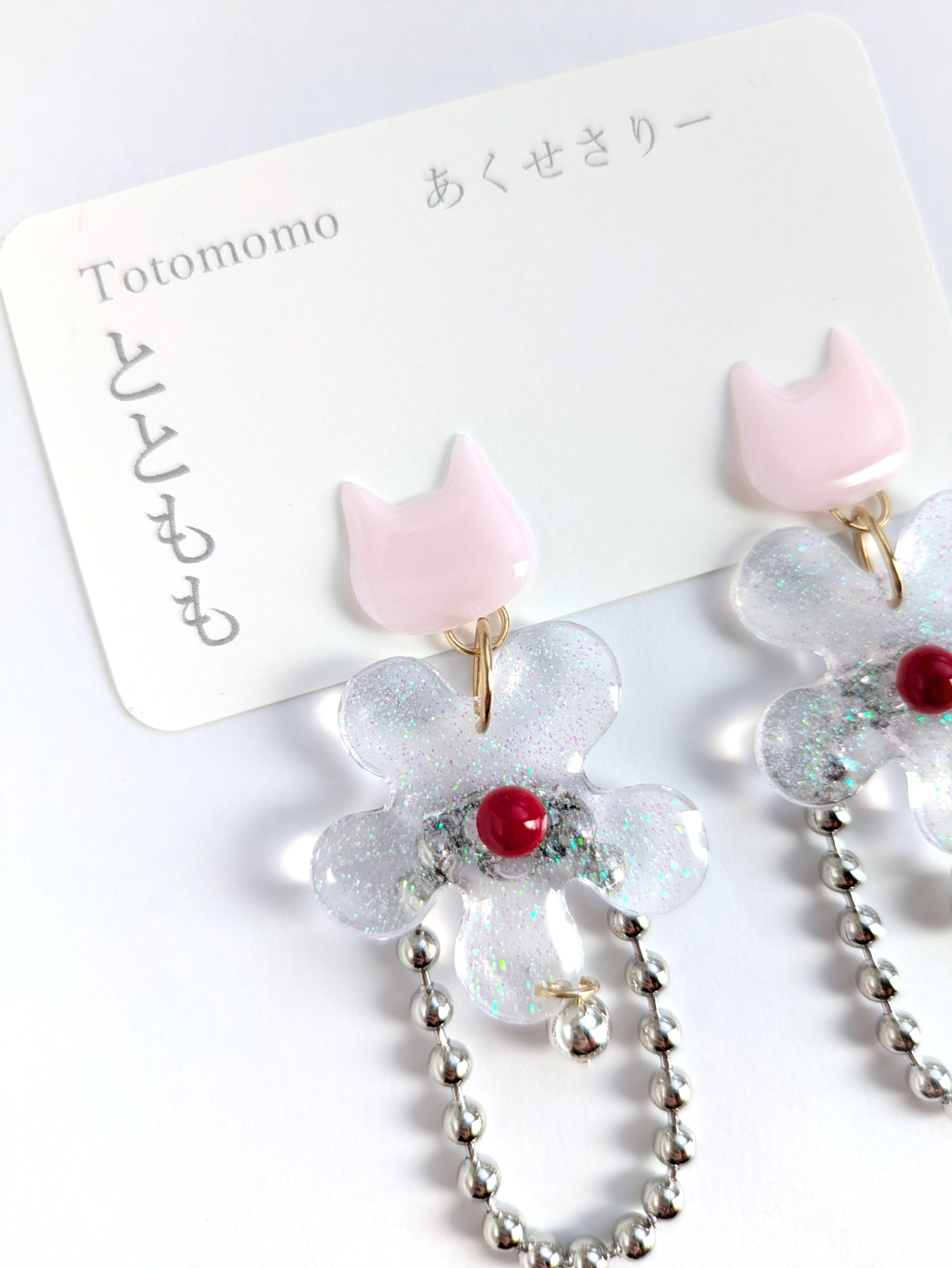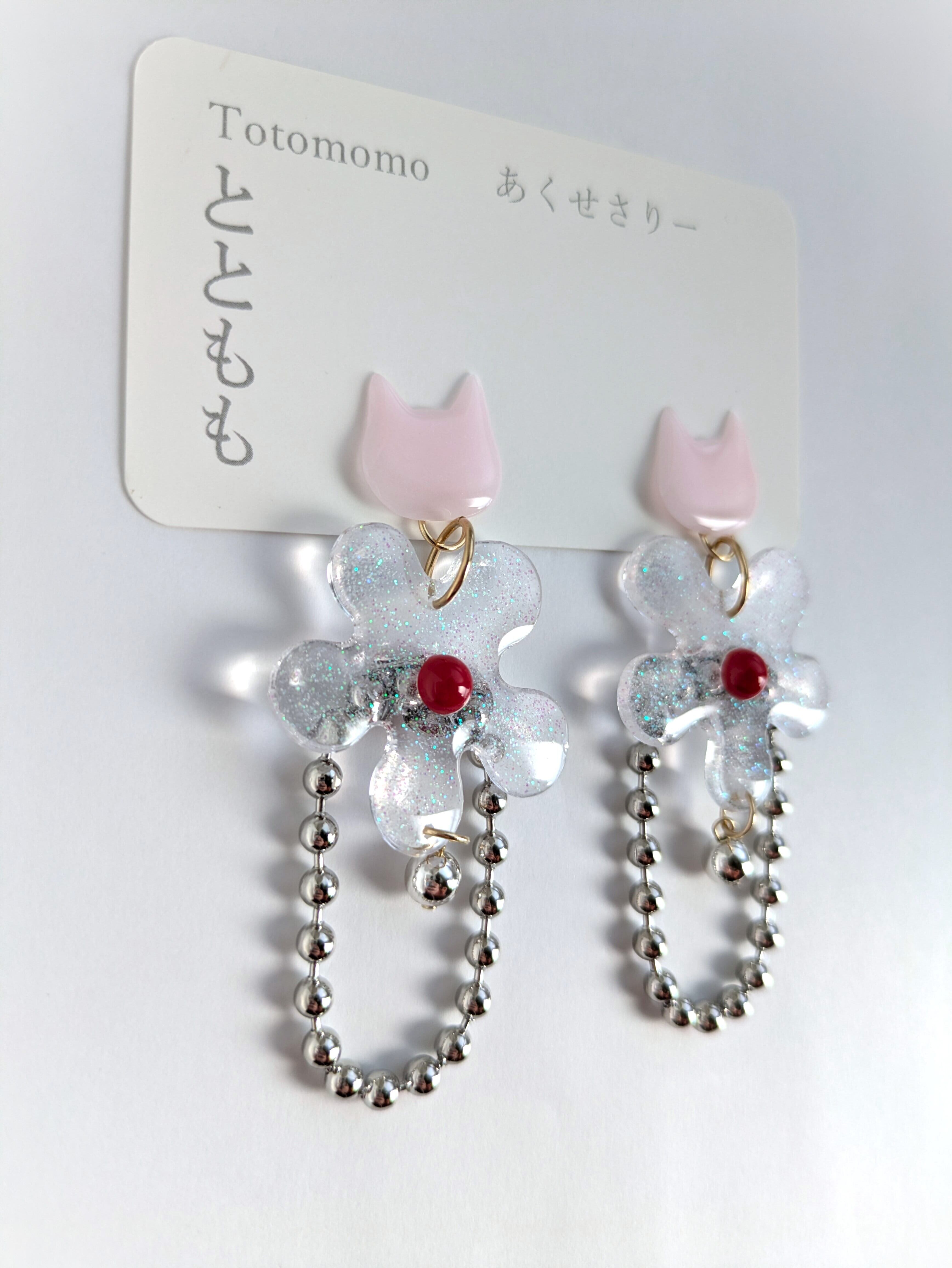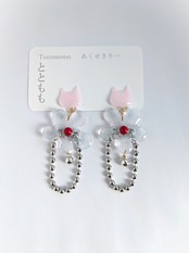 ねことお花の耳飾り//Cat and Flower