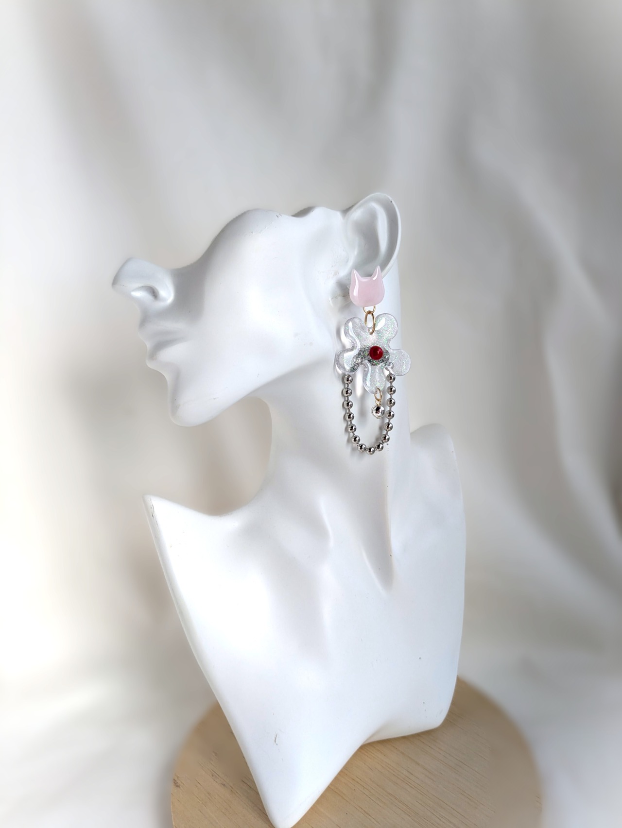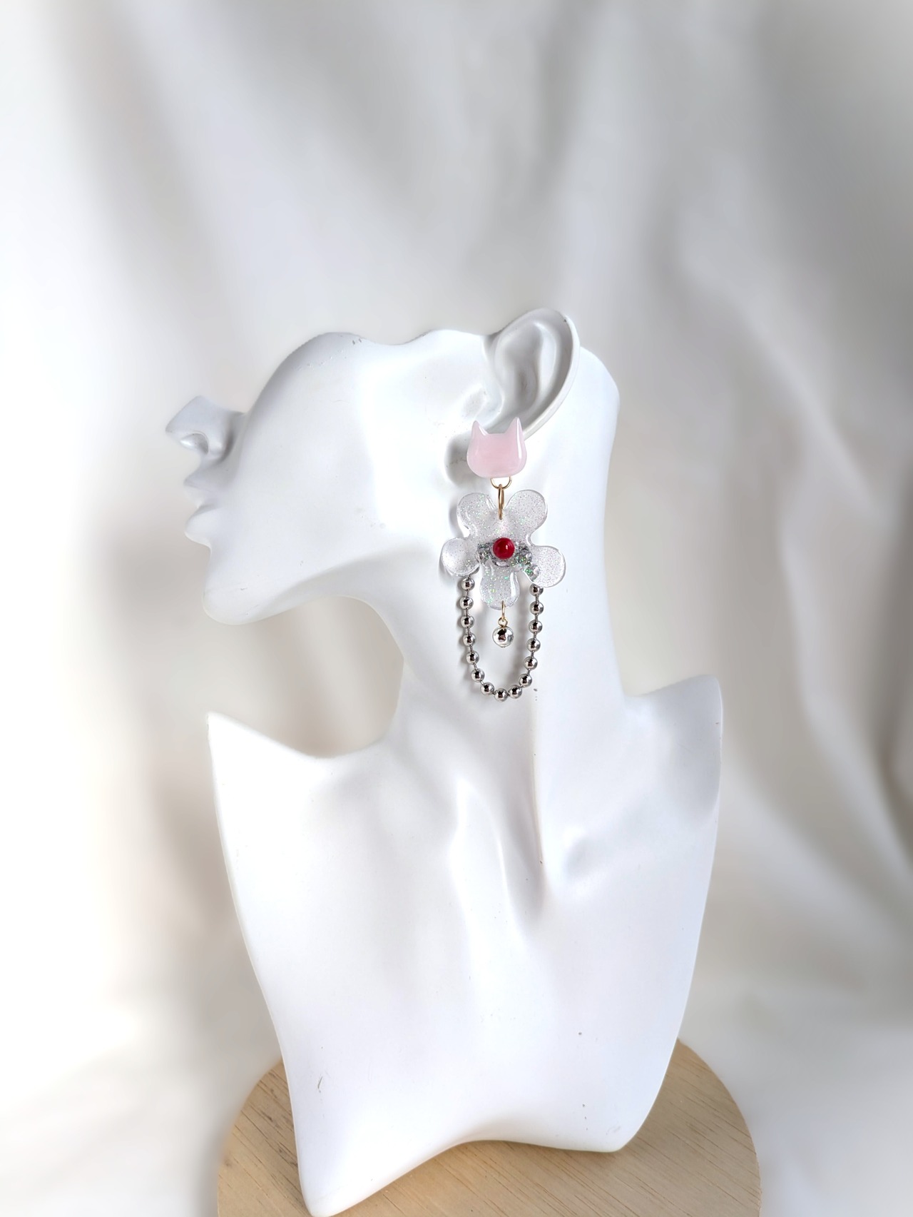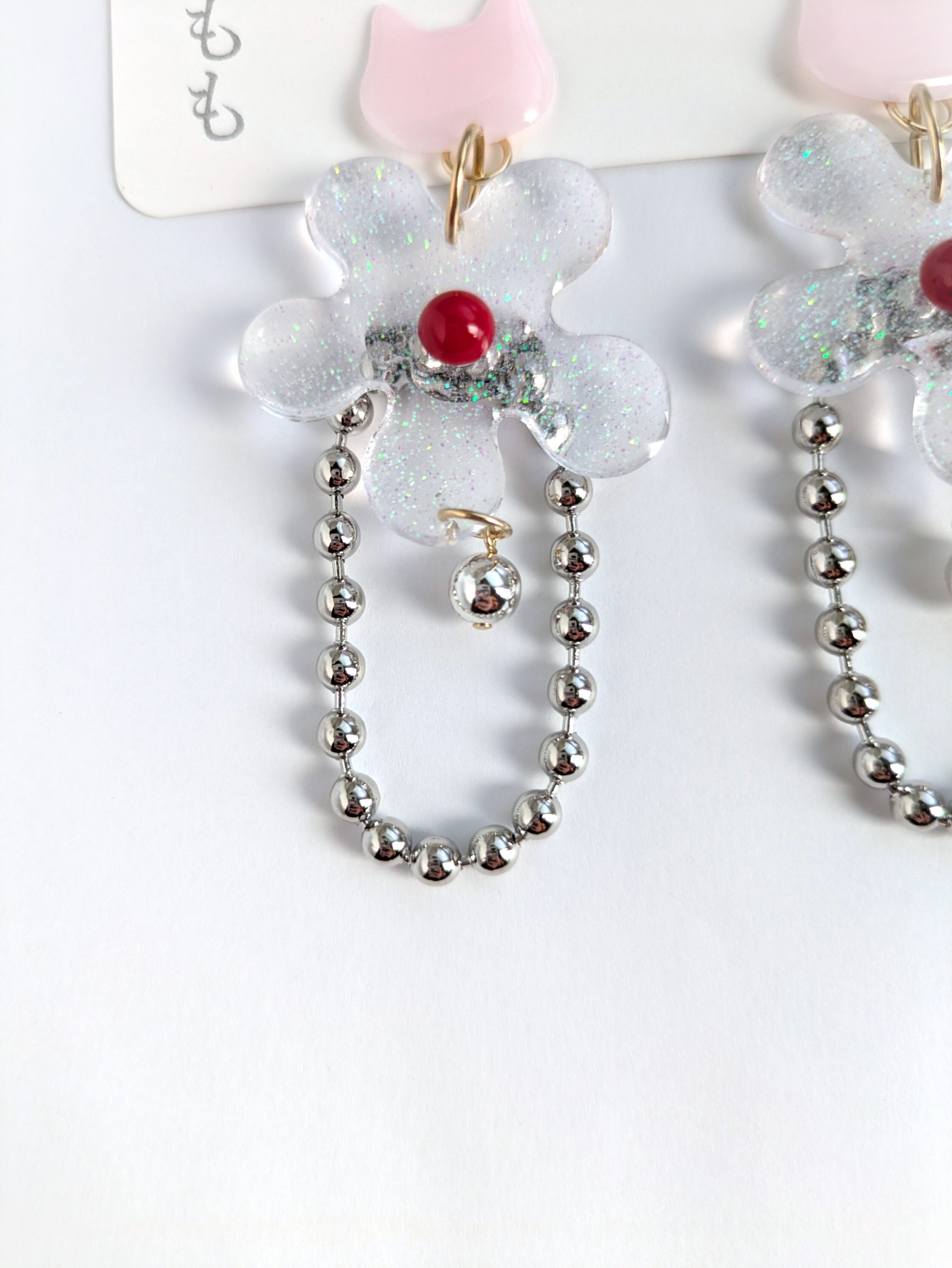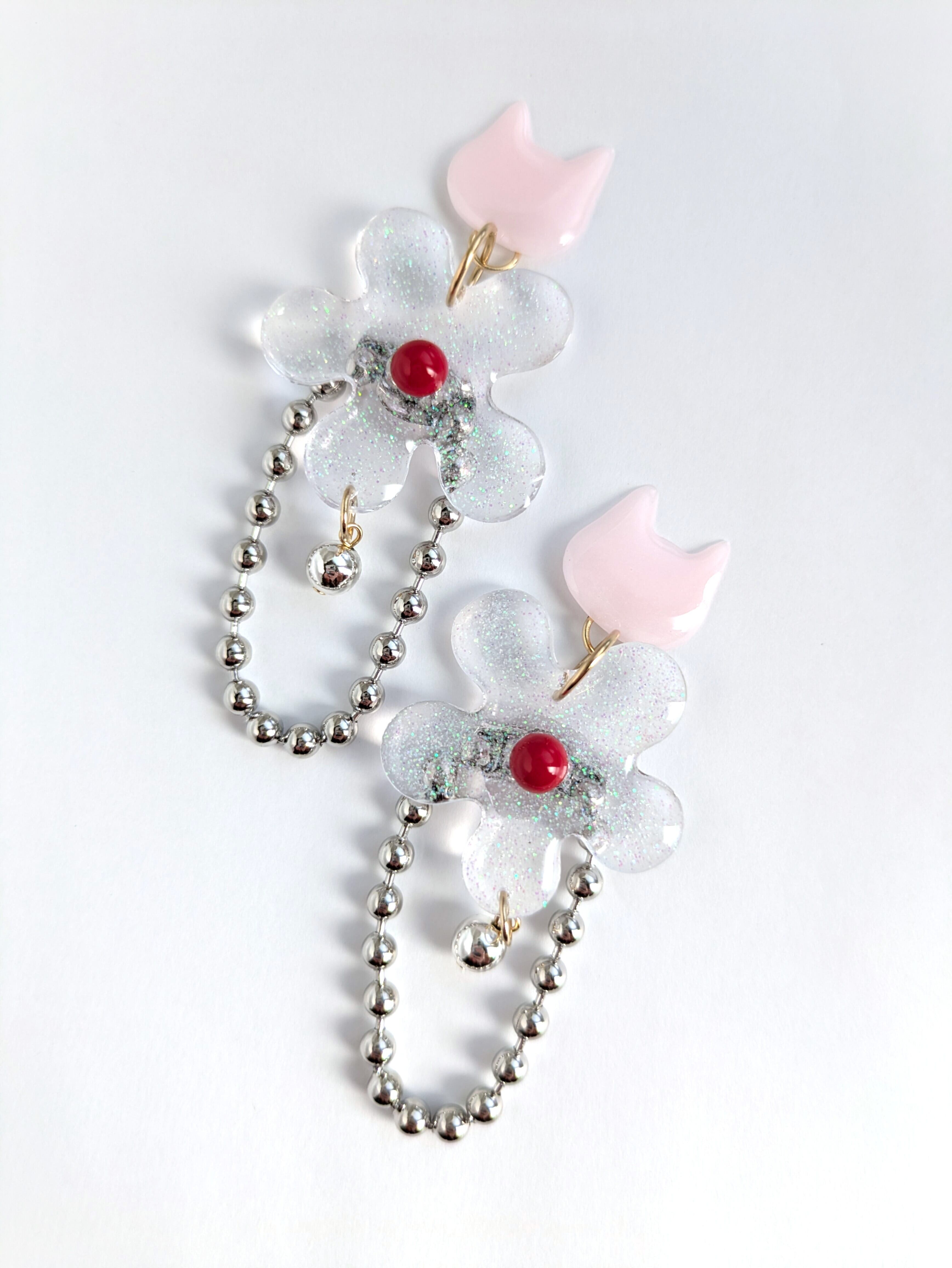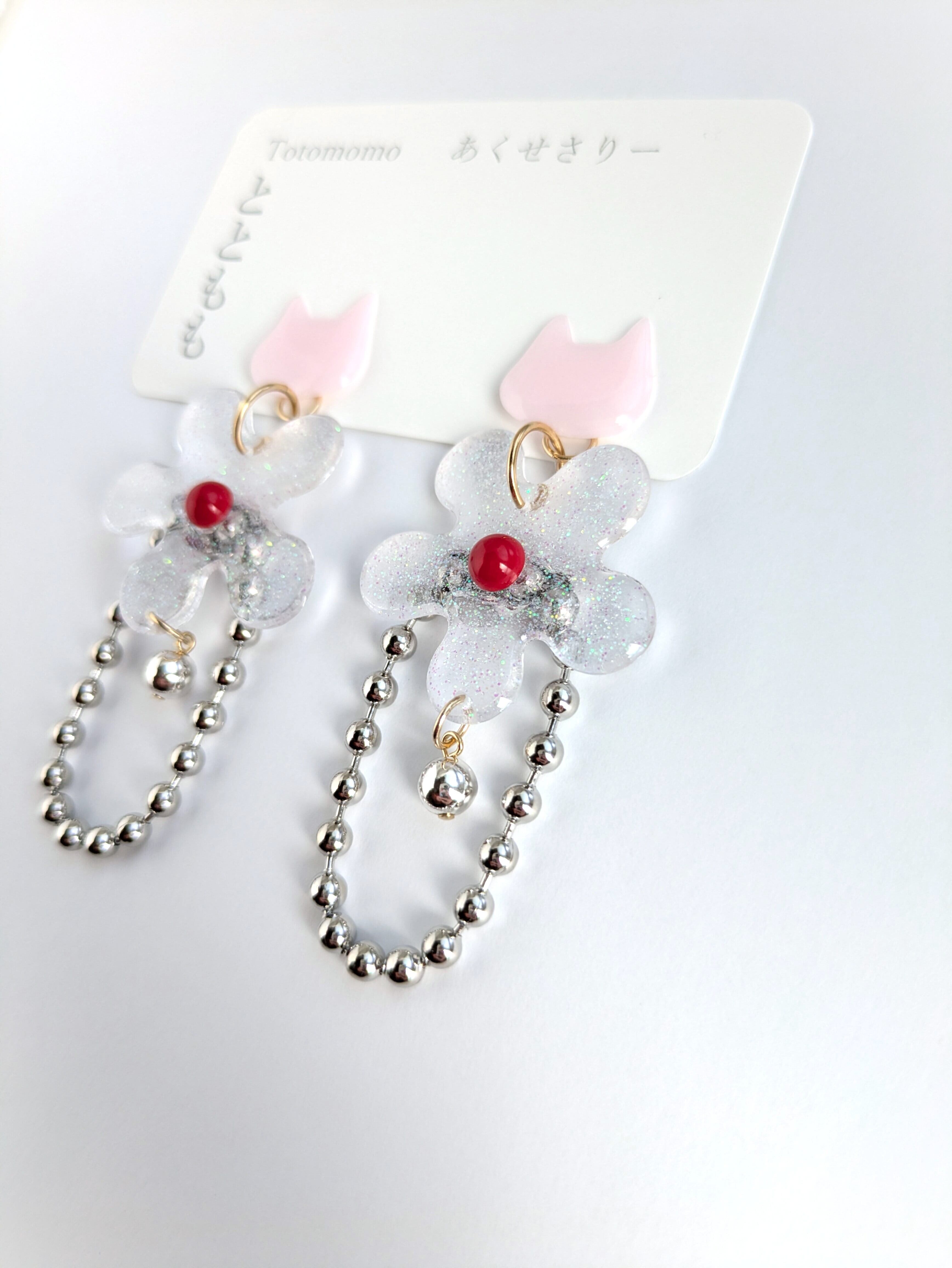 ねことお花の耳飾り//Cat and Flower