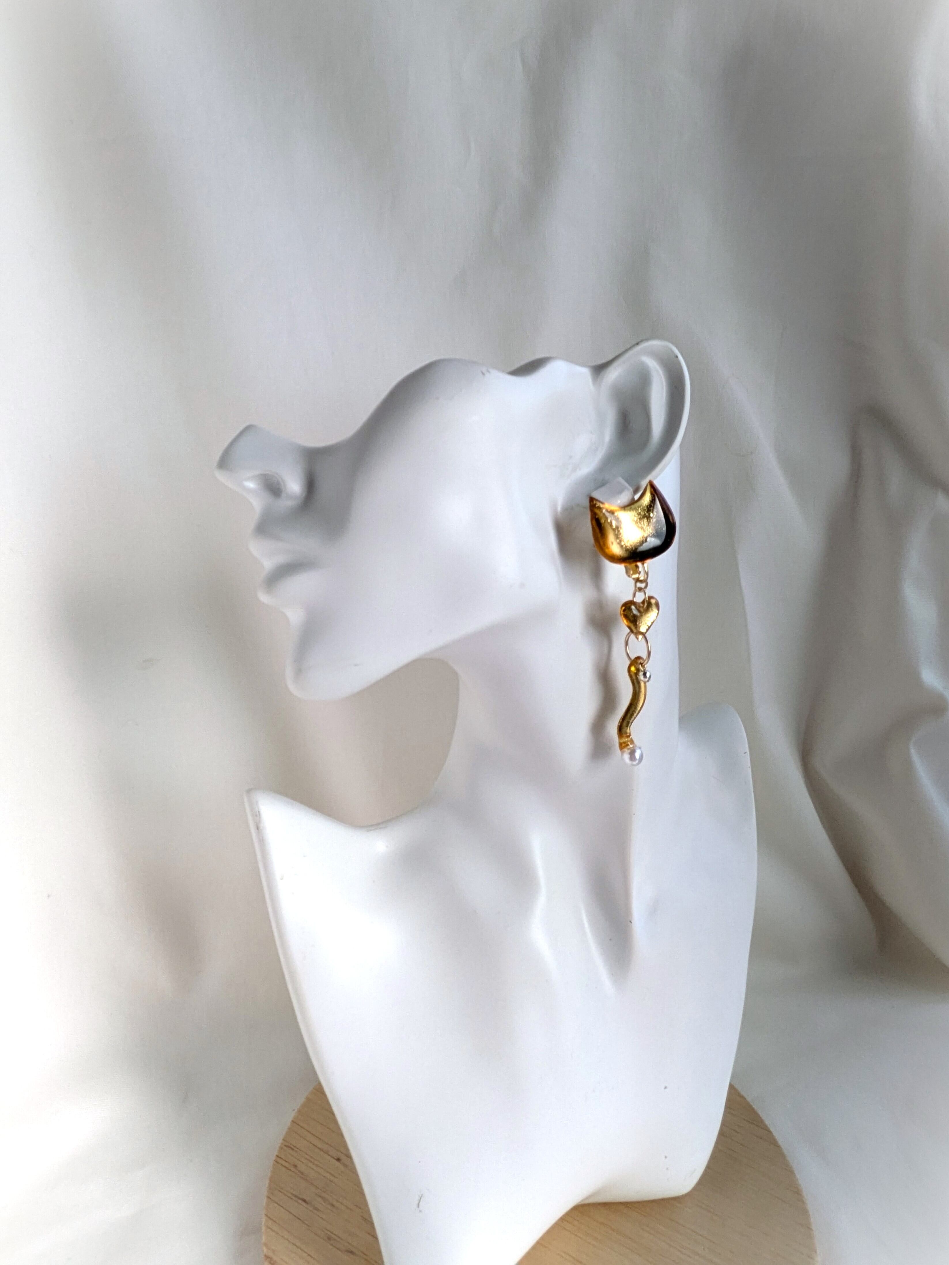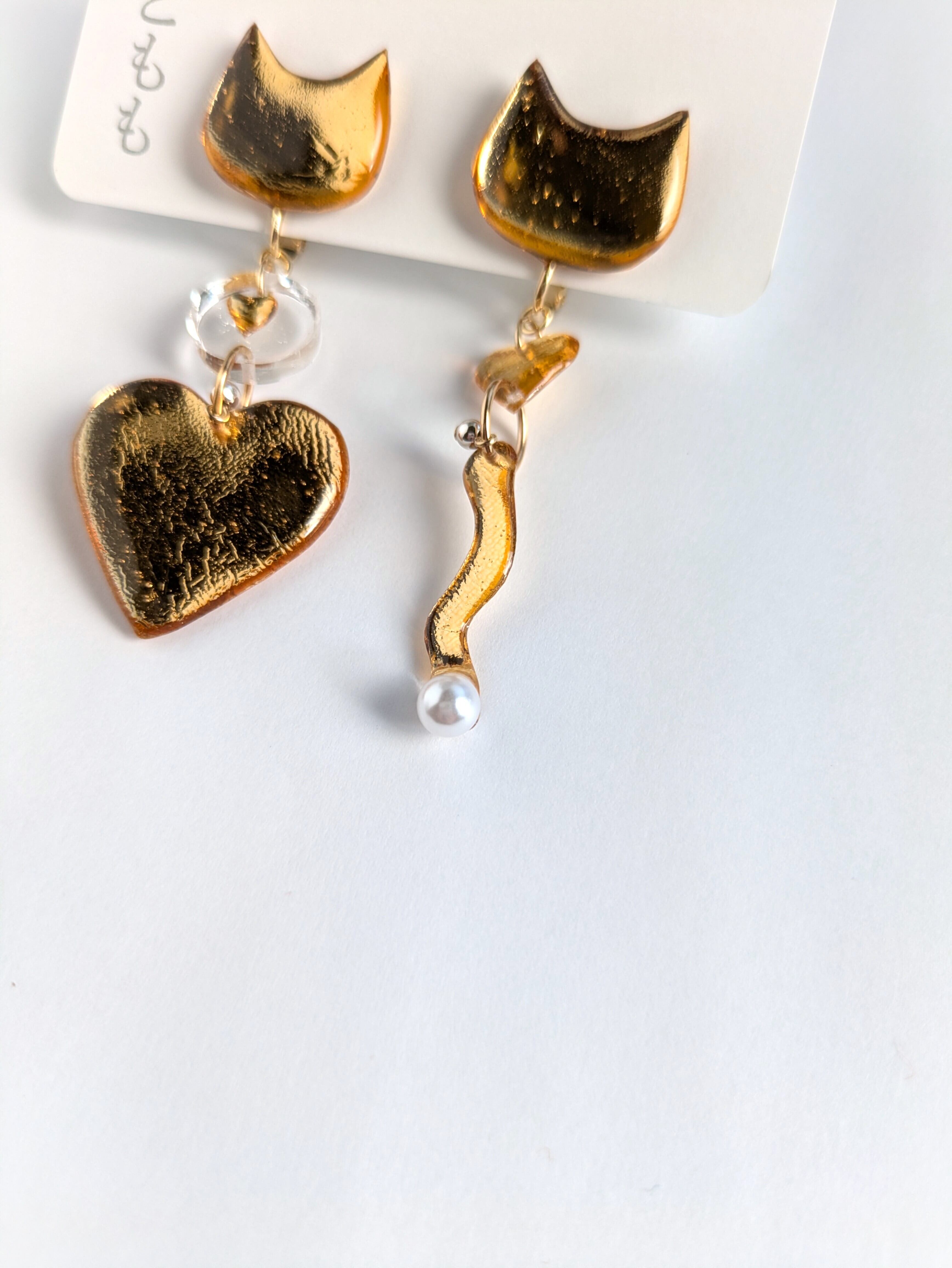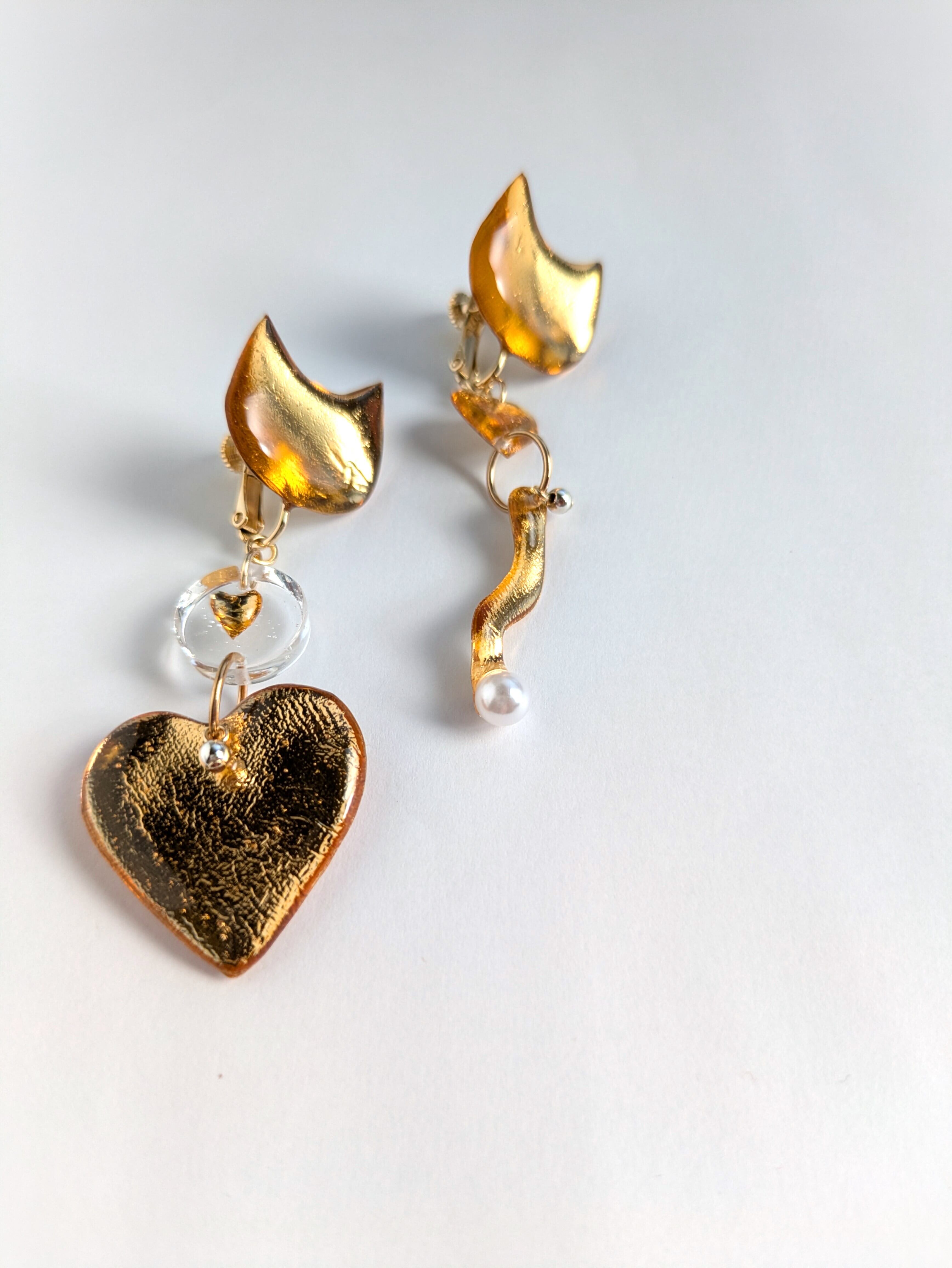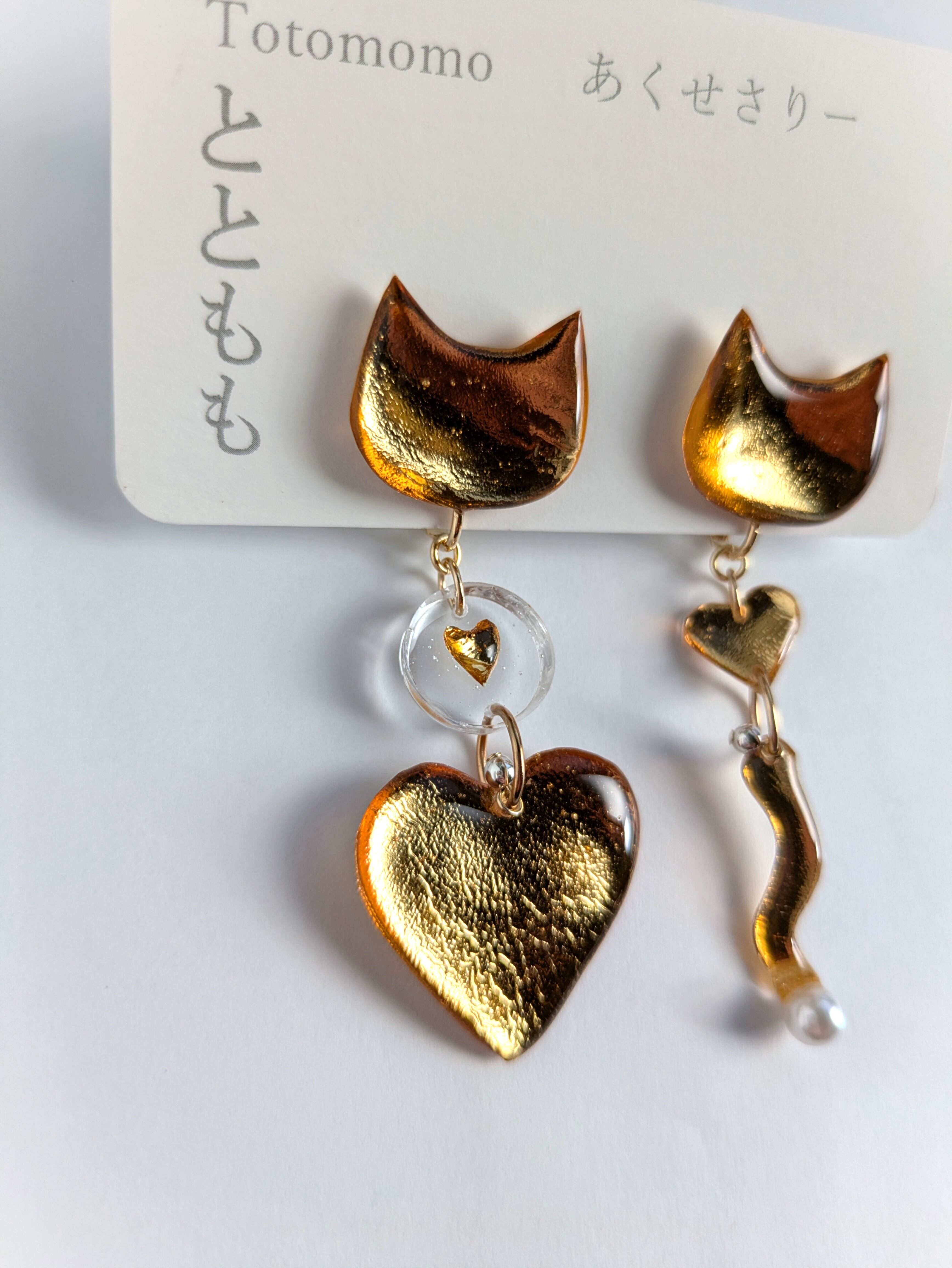 ねことハートの耳飾り//Cat and Heart