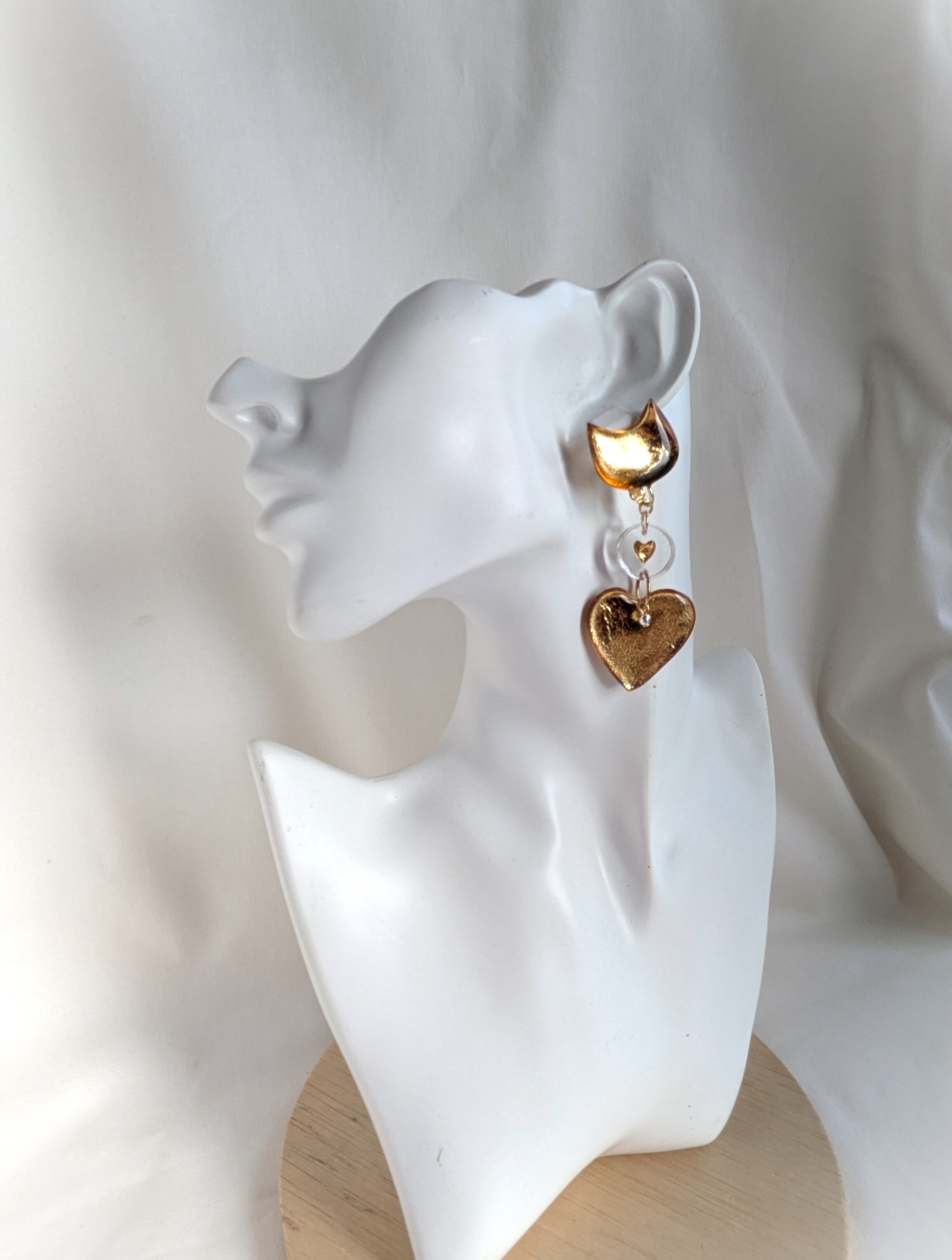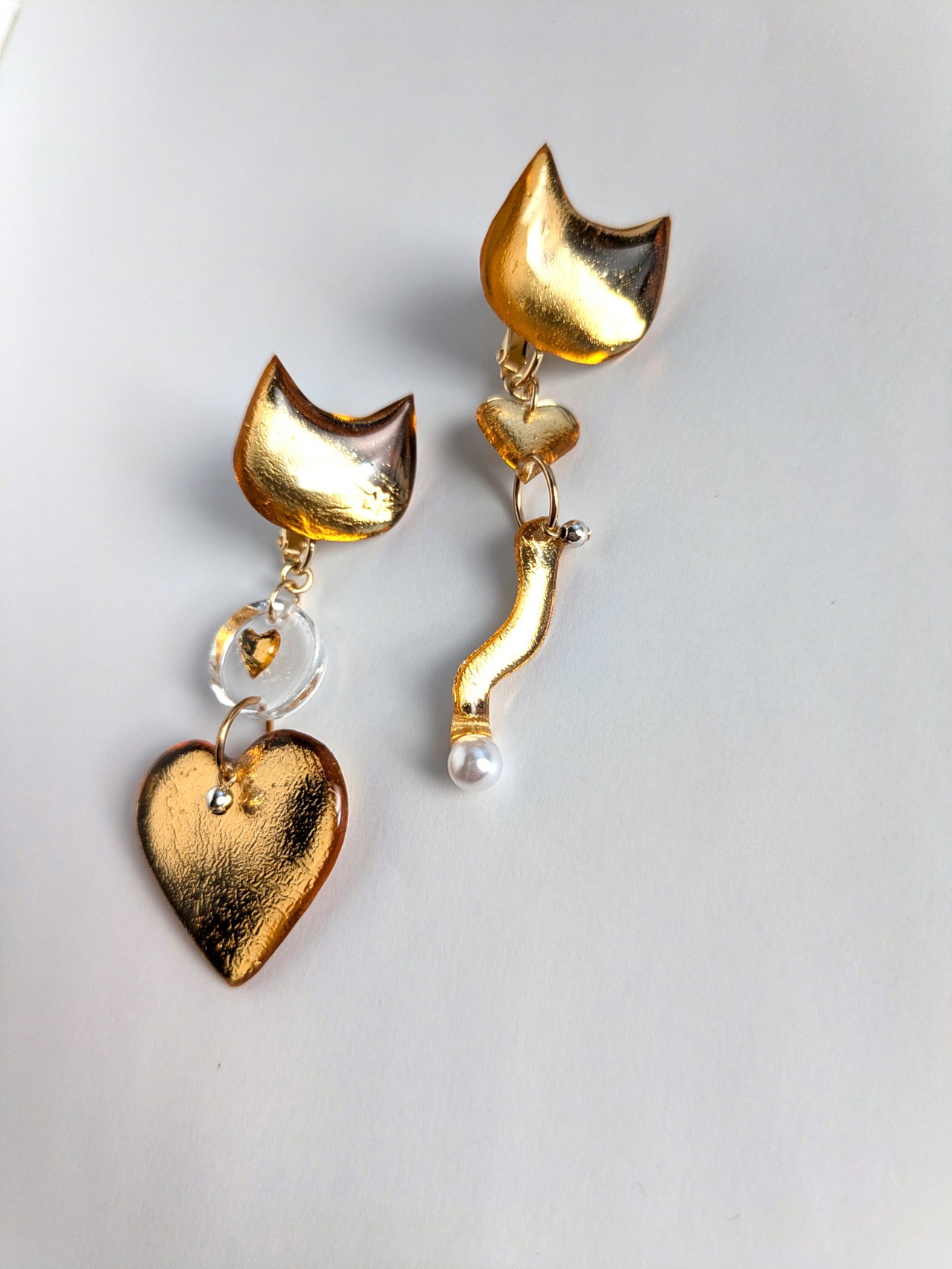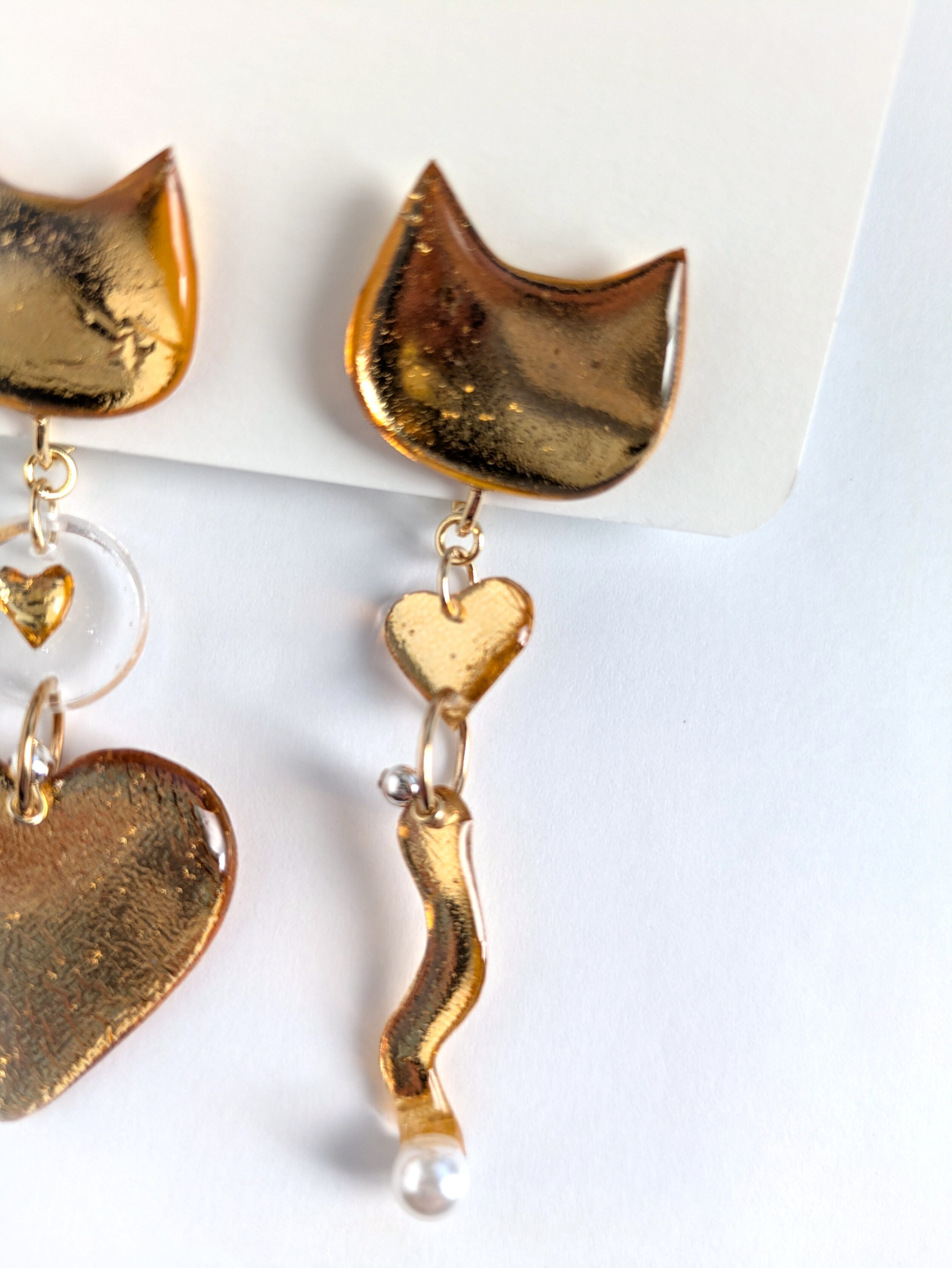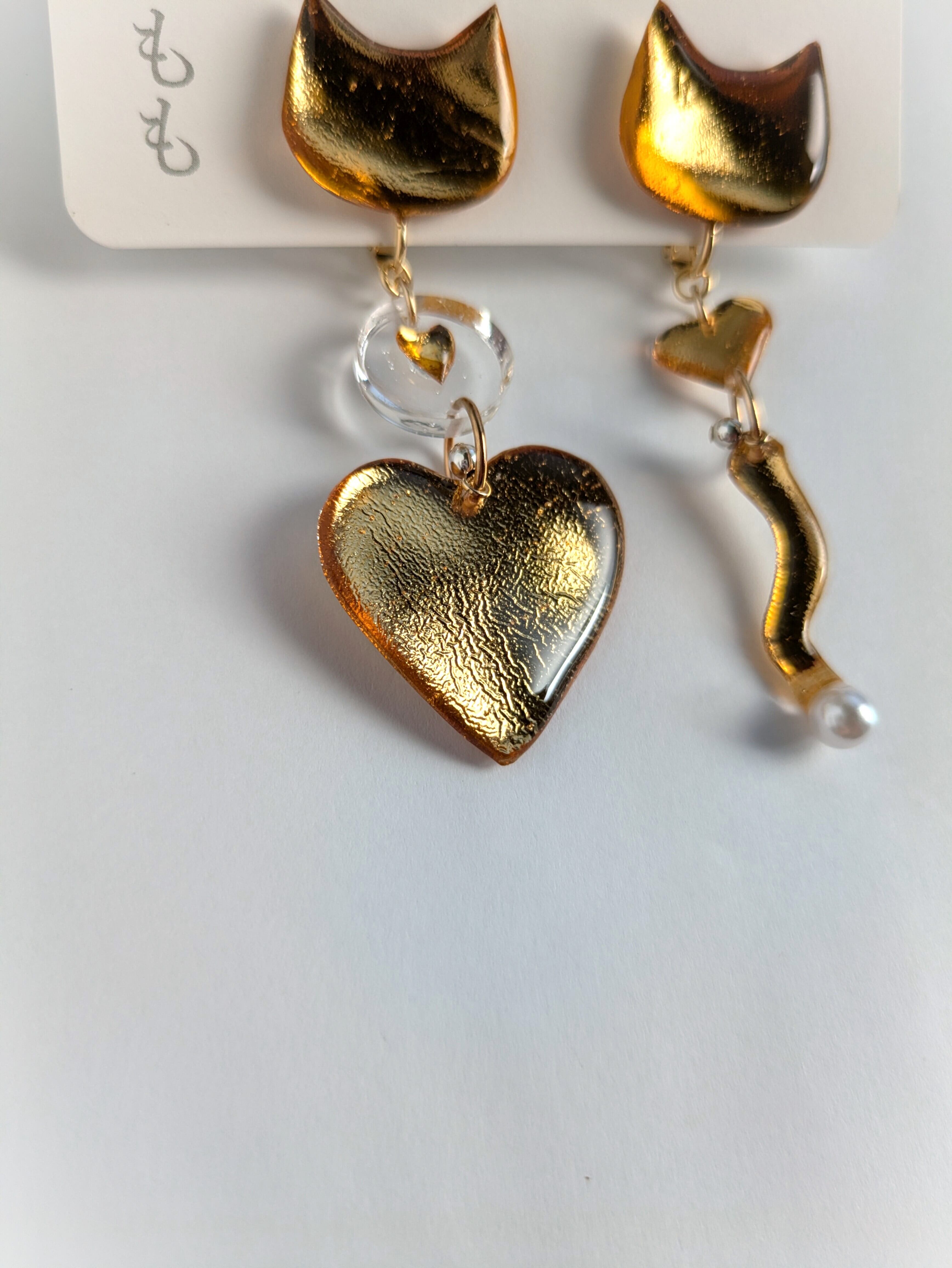 ねことハートの耳飾り//Cat and Heart