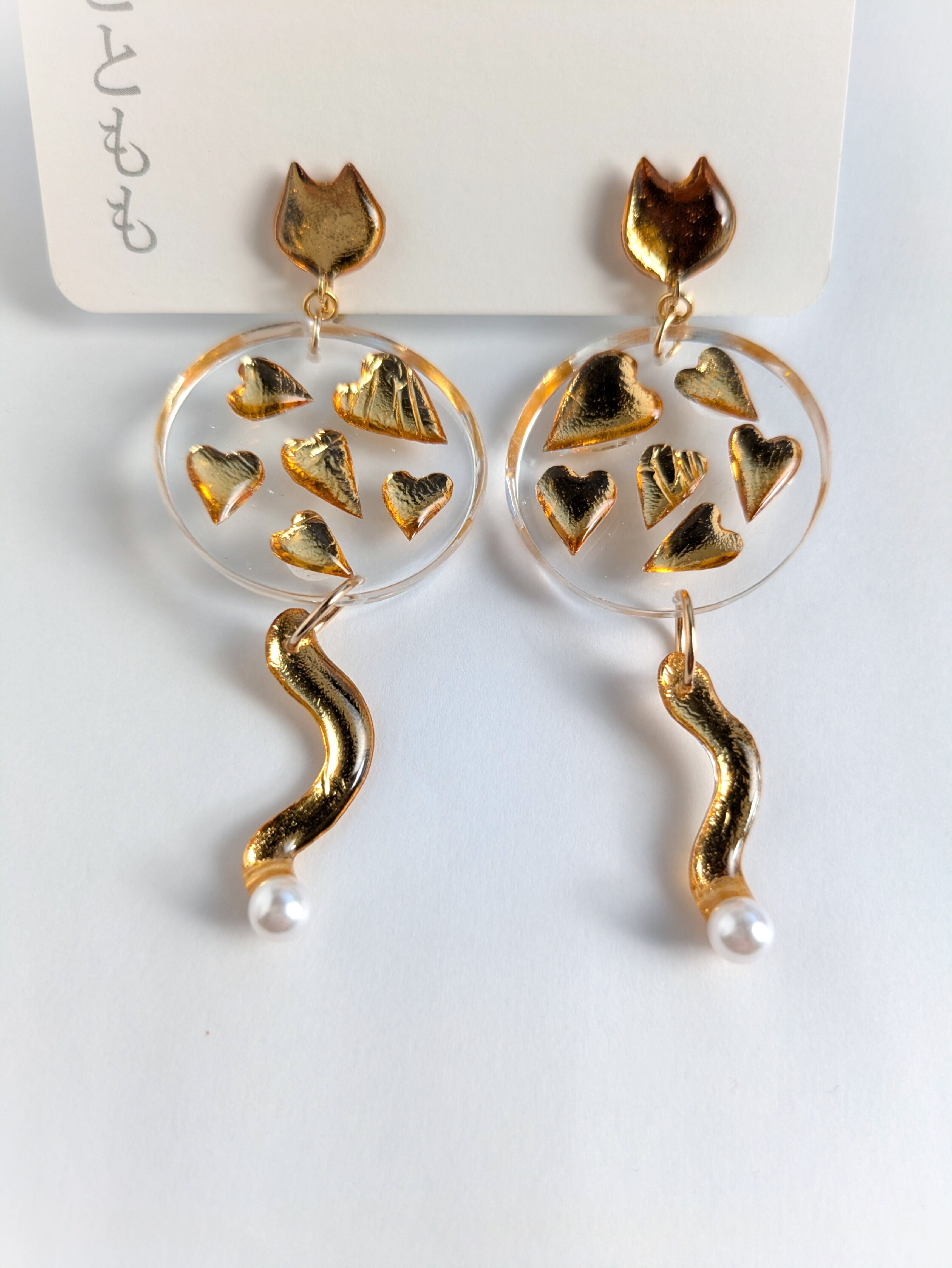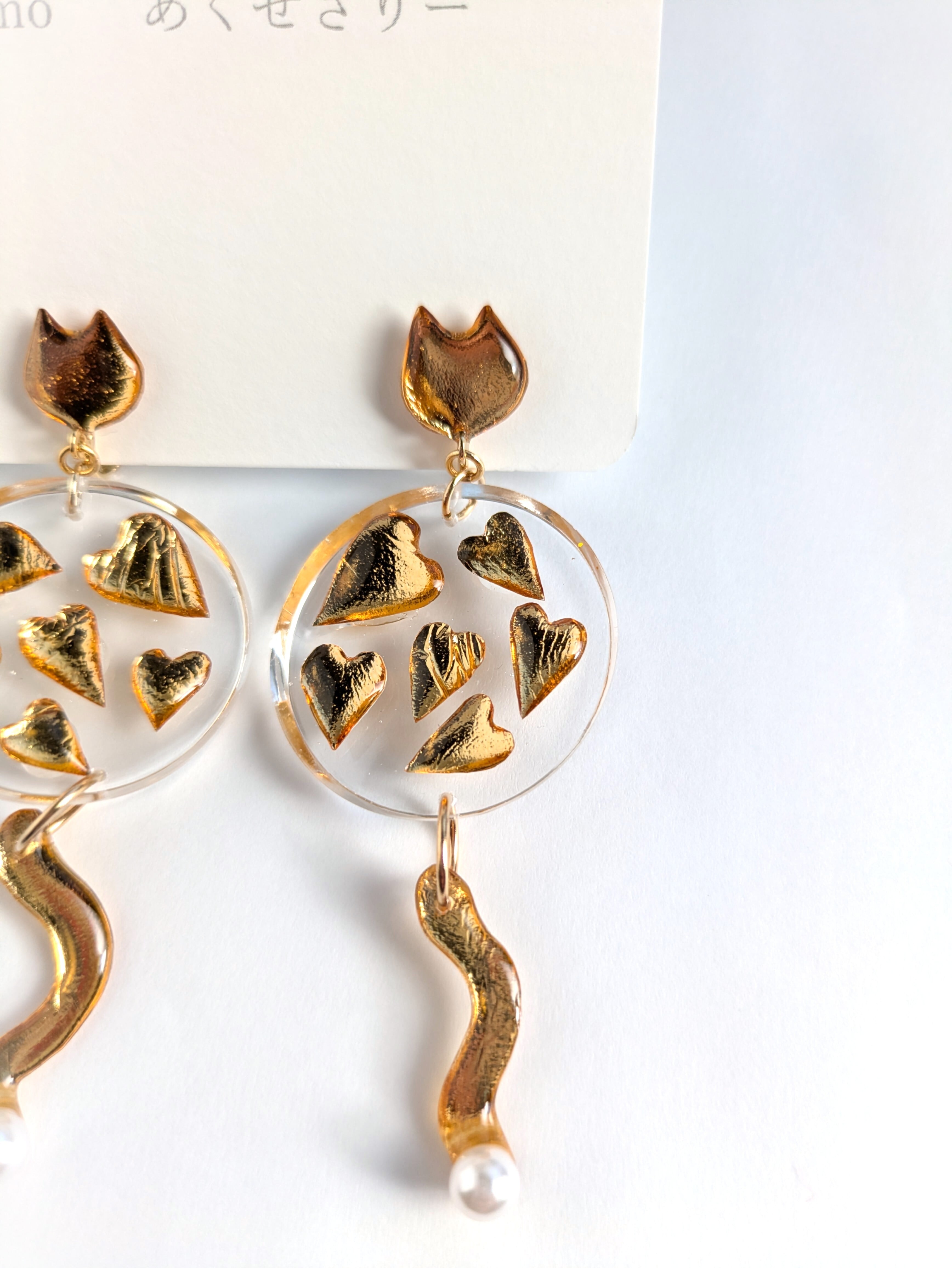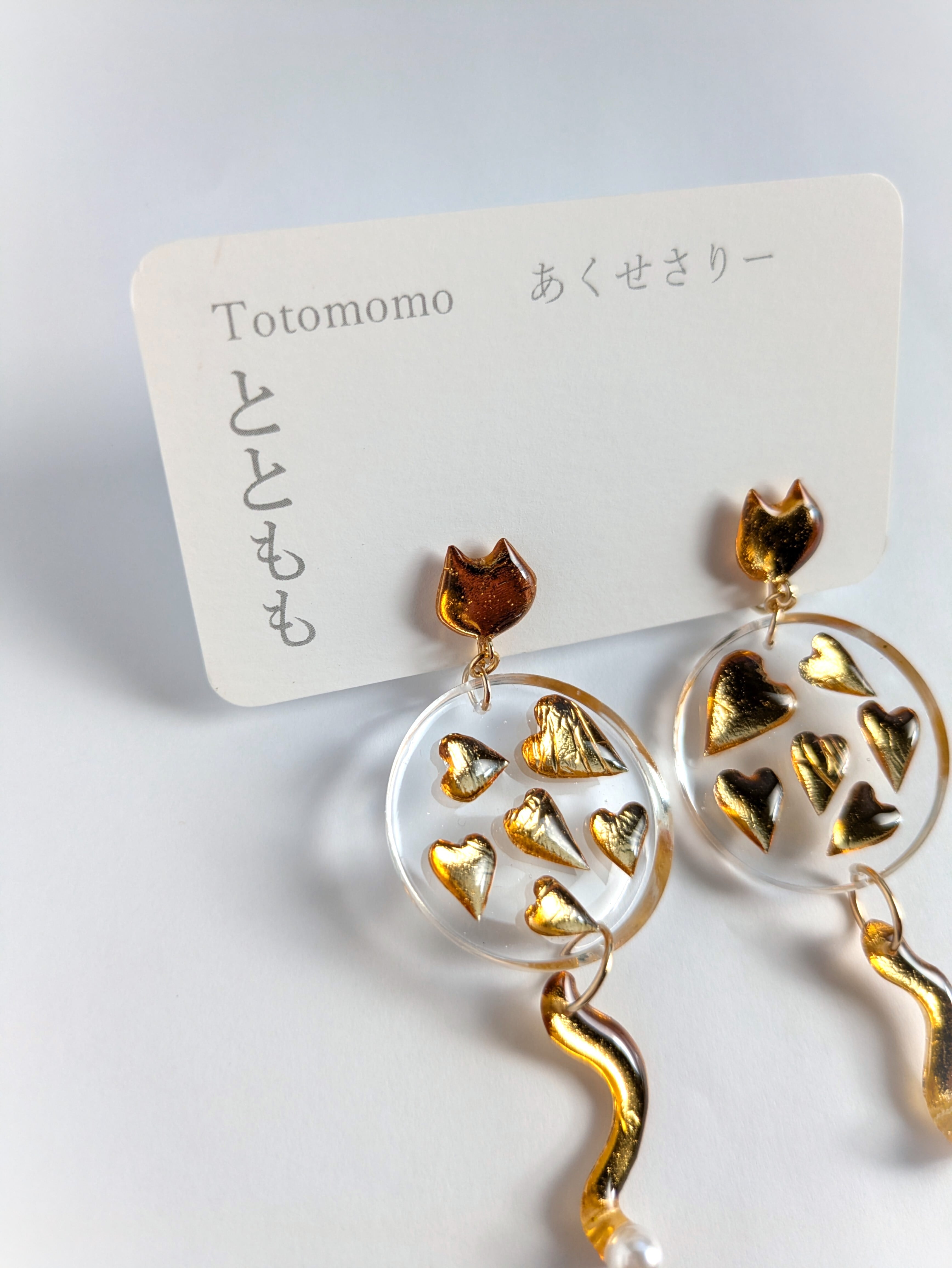ねことハートの耳飾り//Cat and Heart