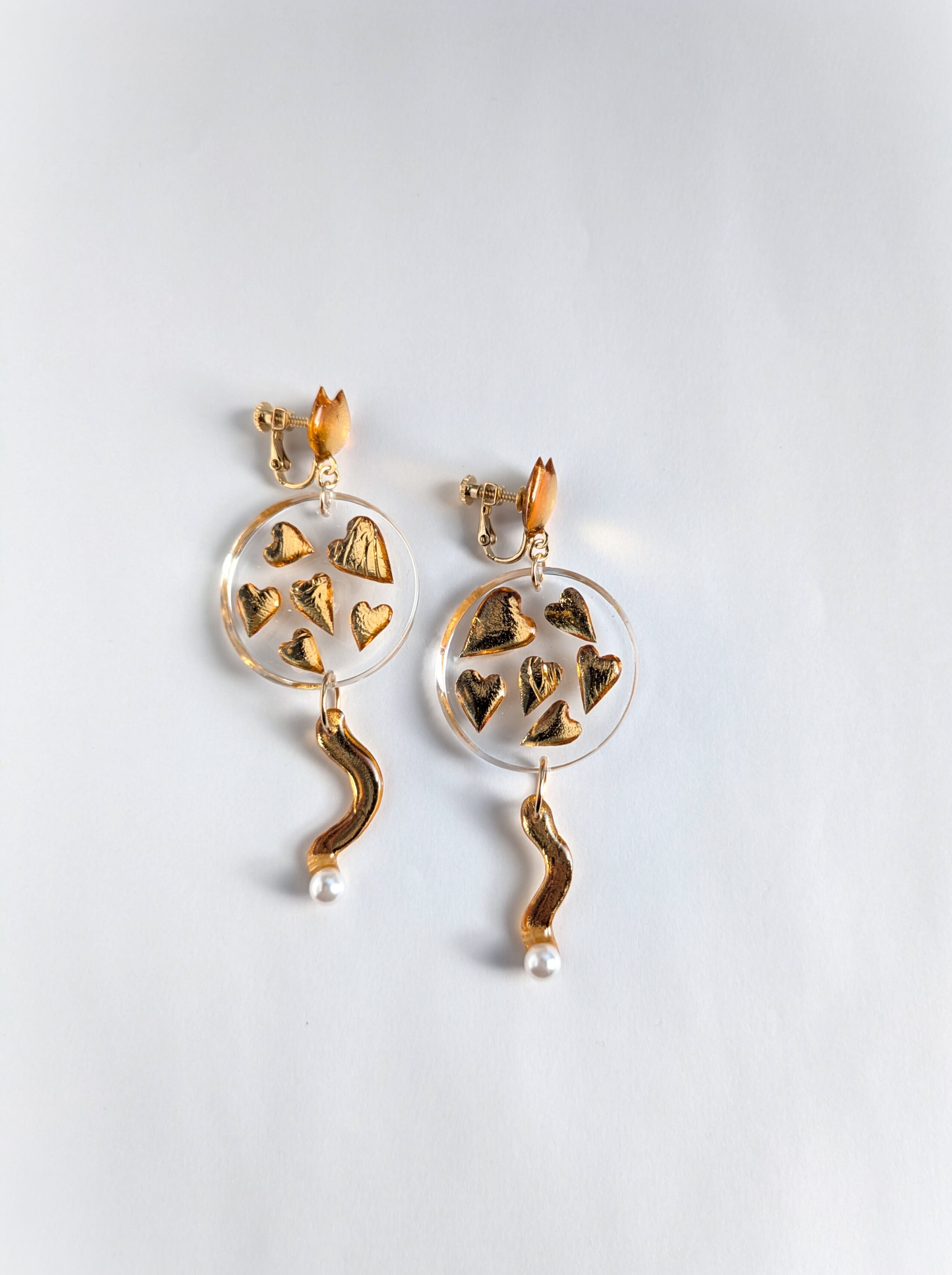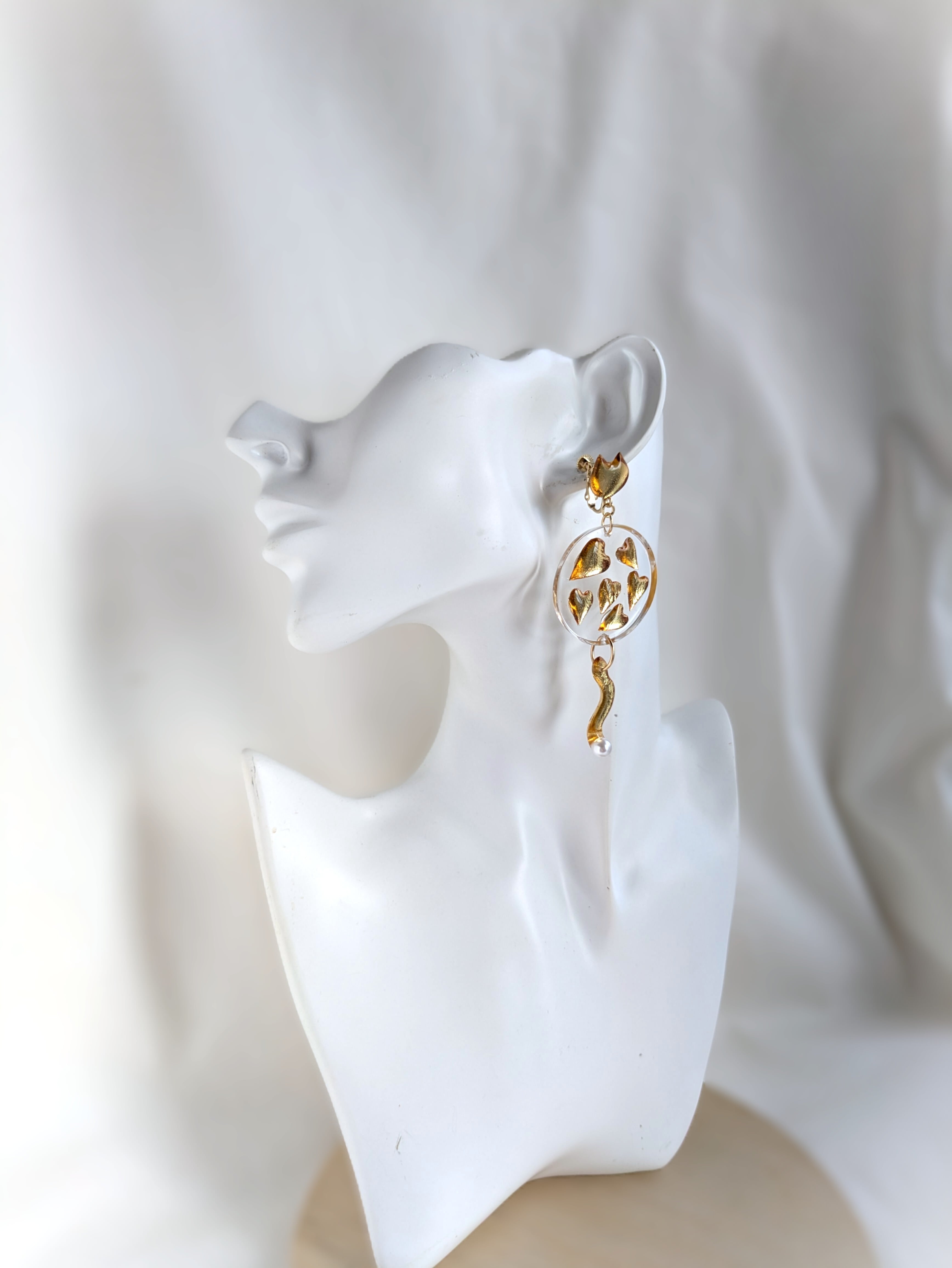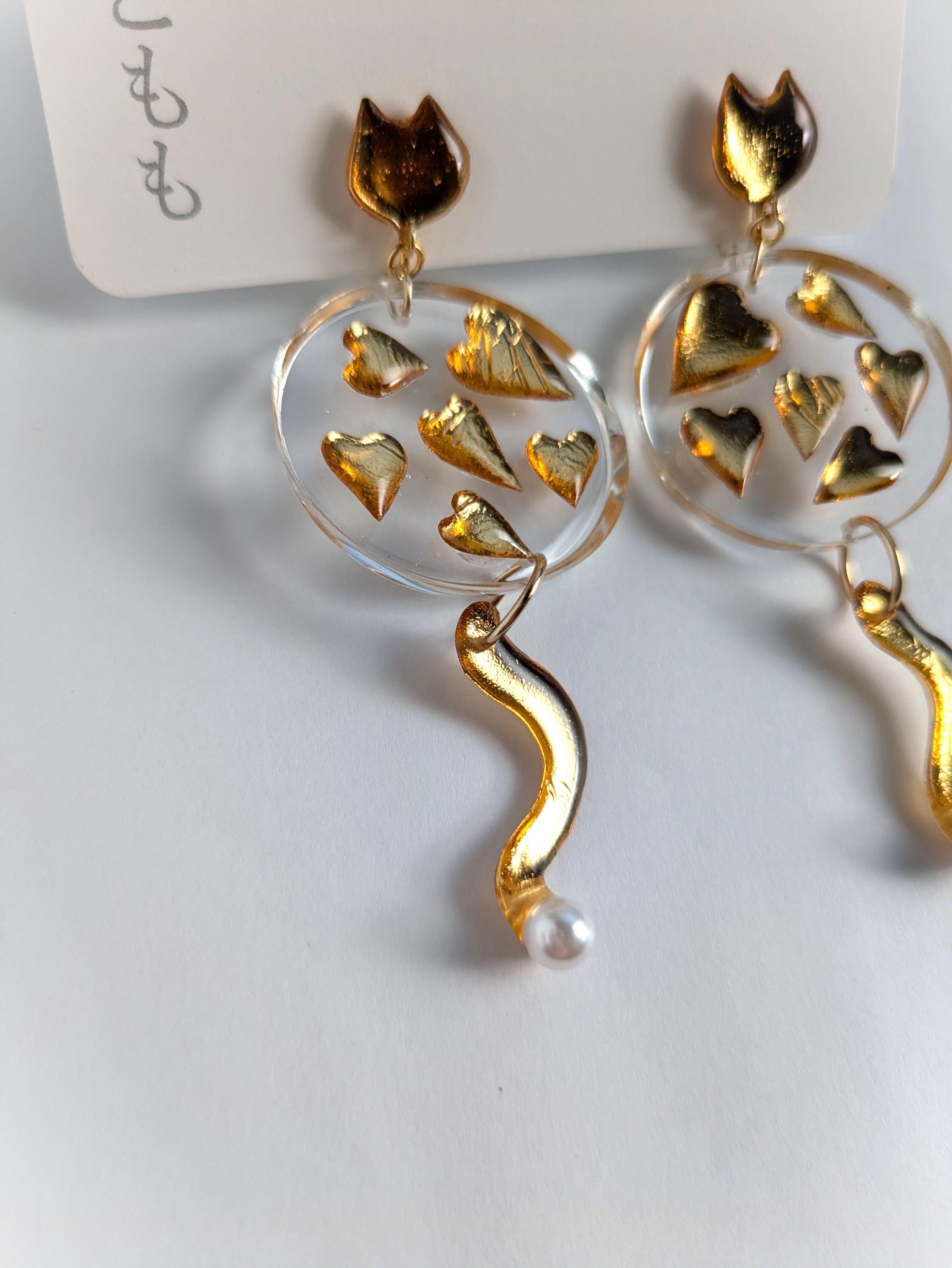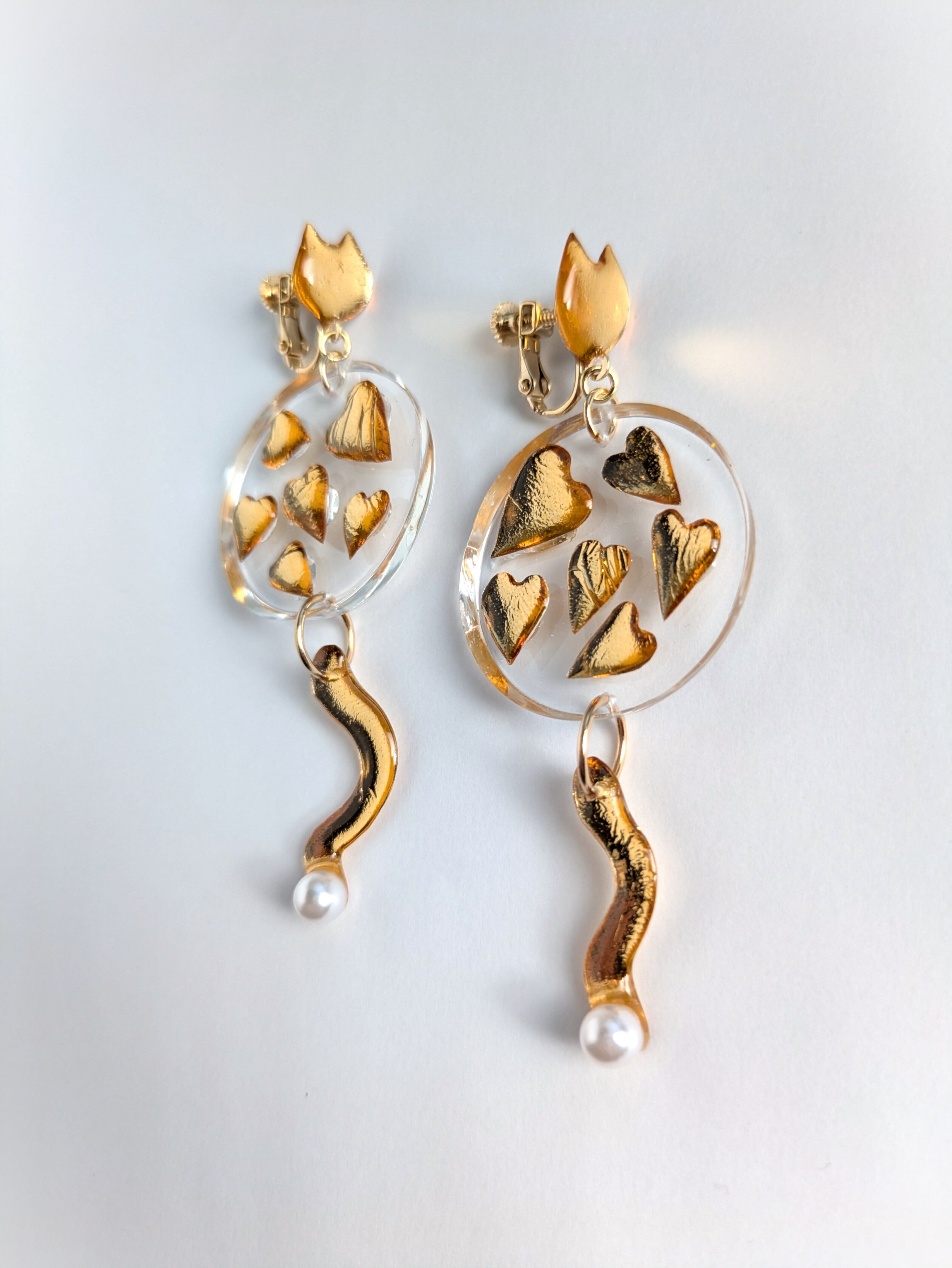 ねことハートの耳飾り//Cat and Heart