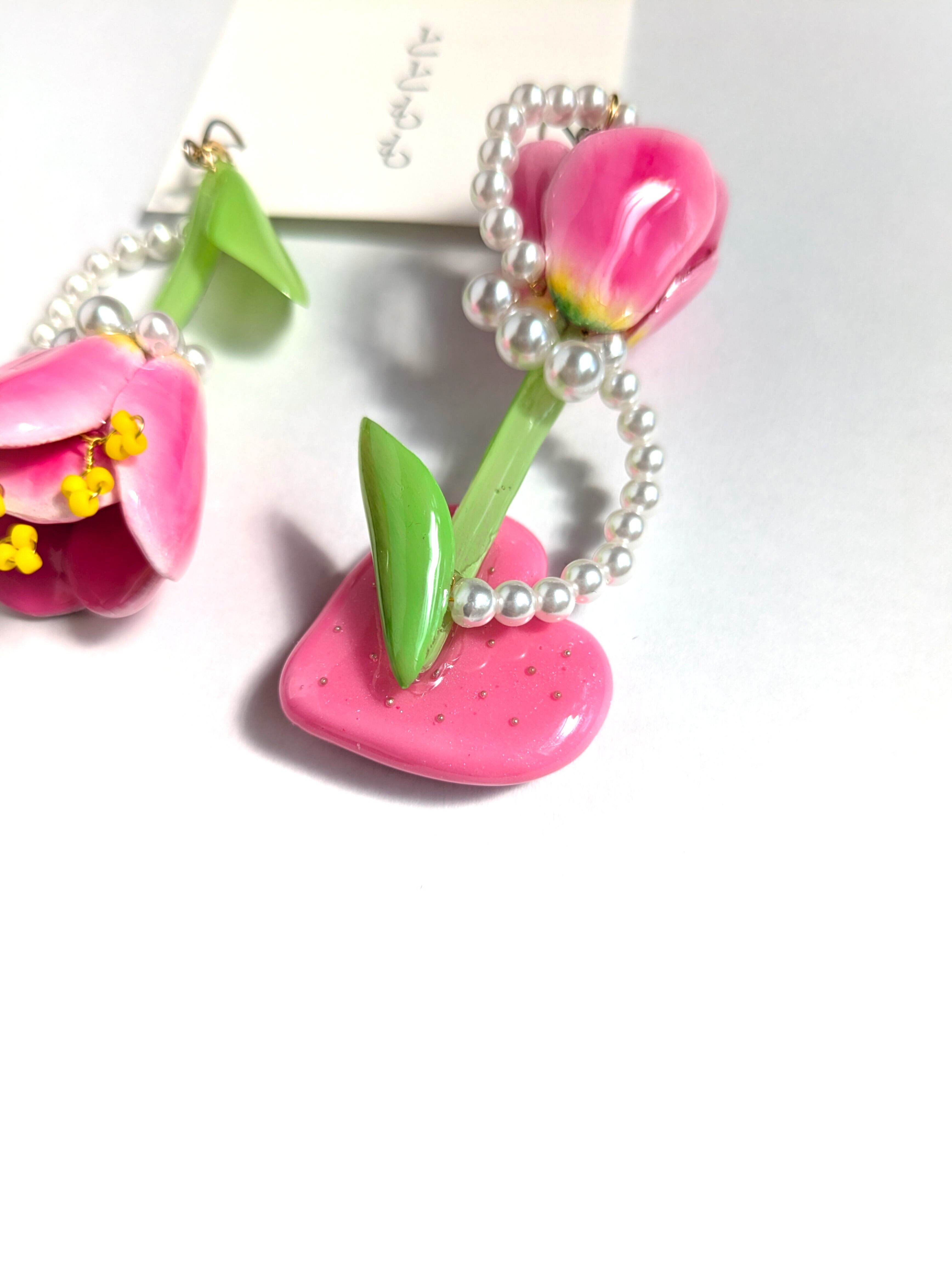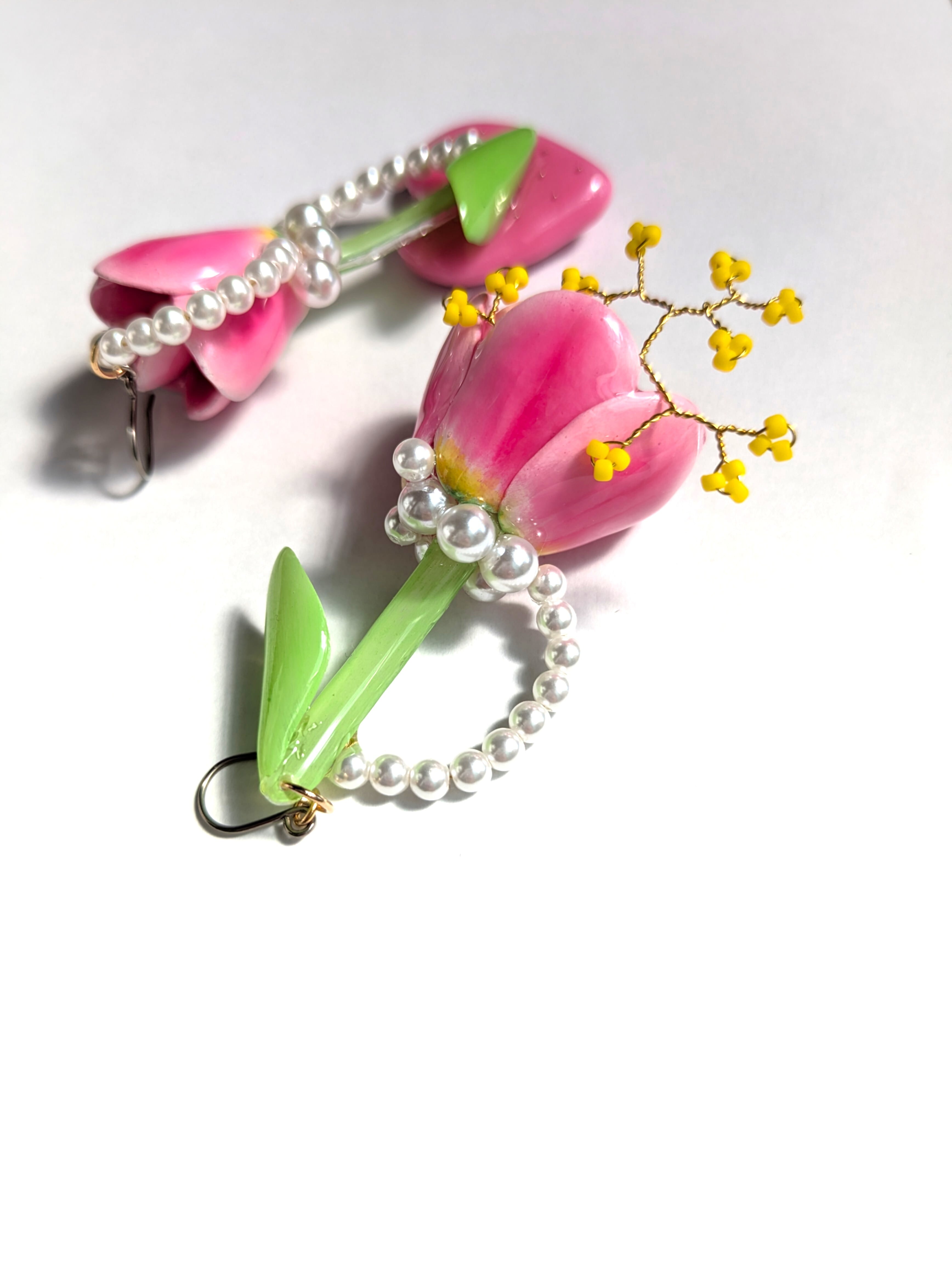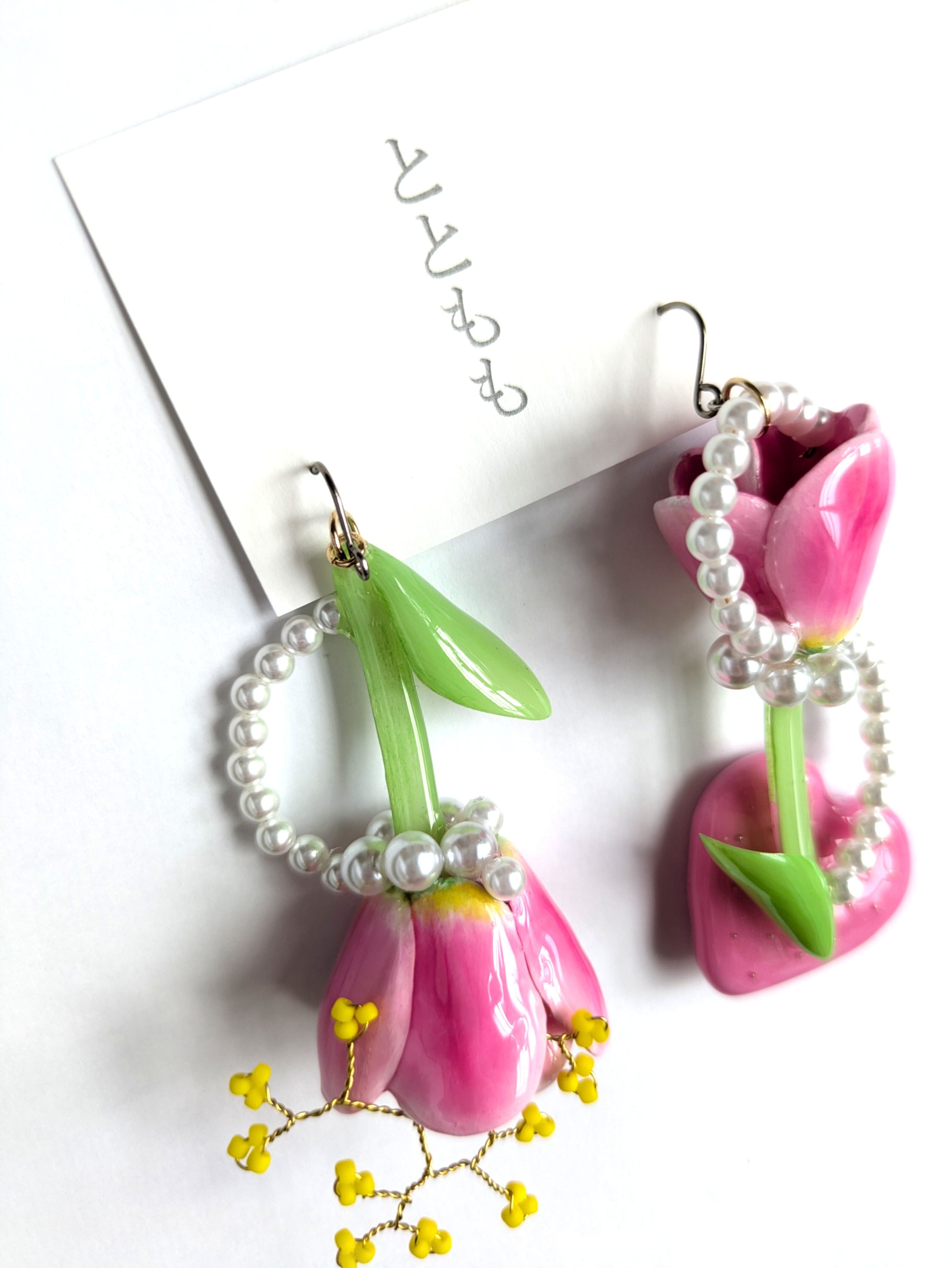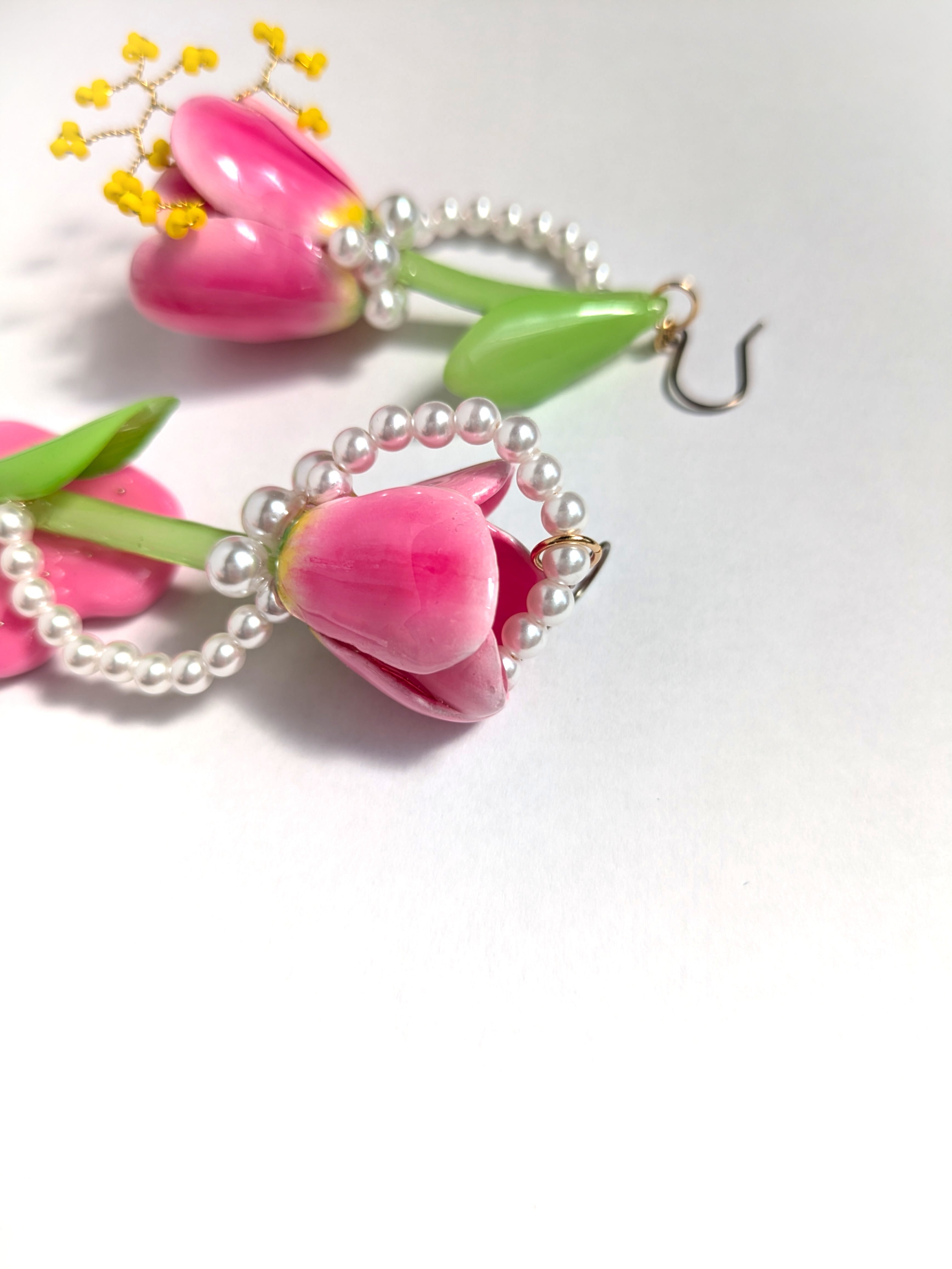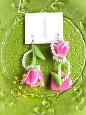 チューリップの周りにはパールを流れるようなデザインにあしらいました。