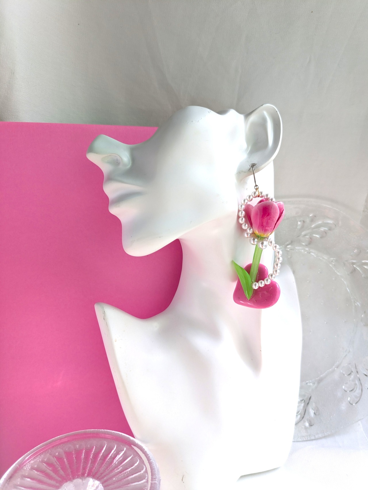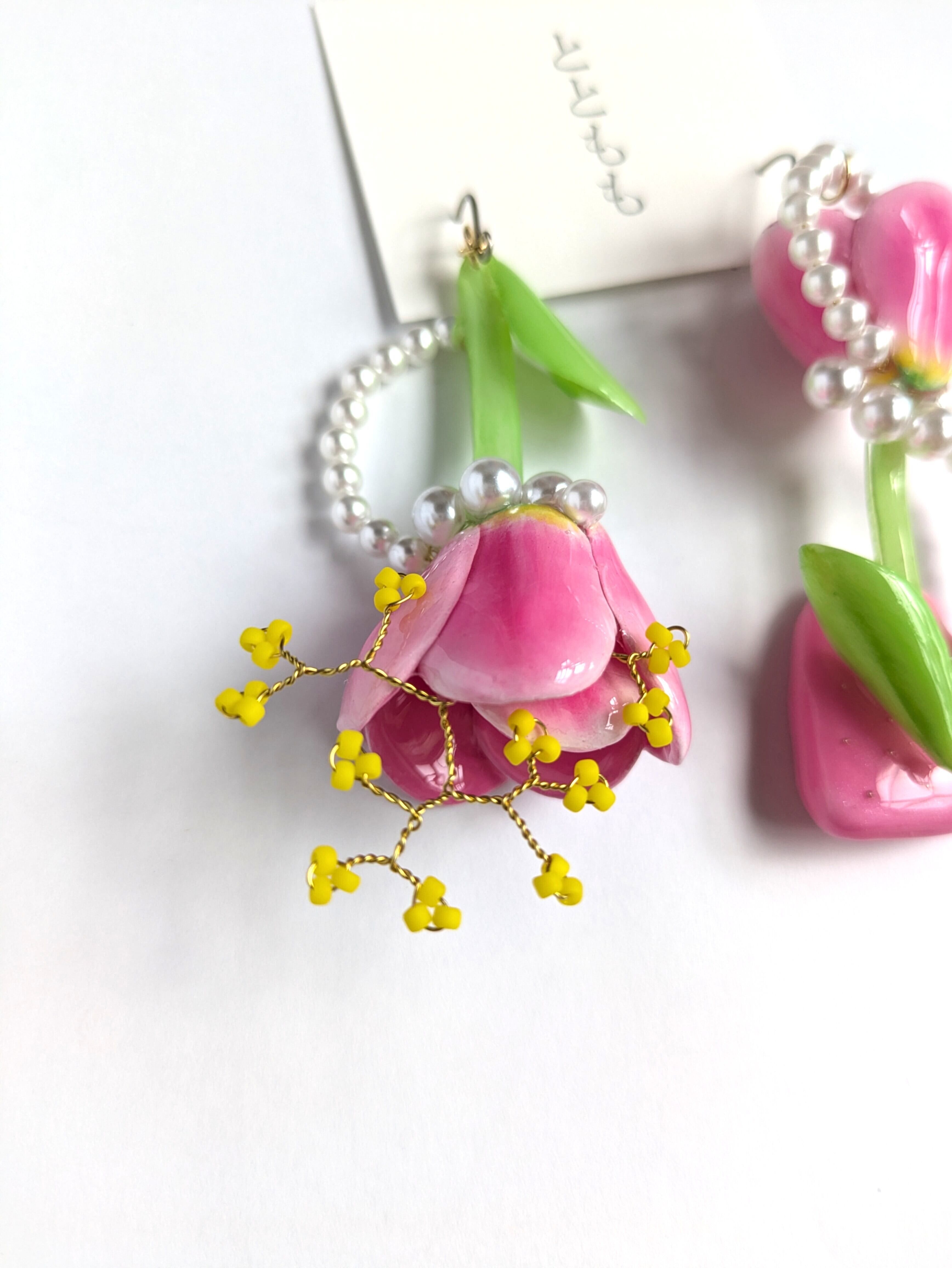 耳元に大きく咲くチューリップはインパクト抜群なアイテム。